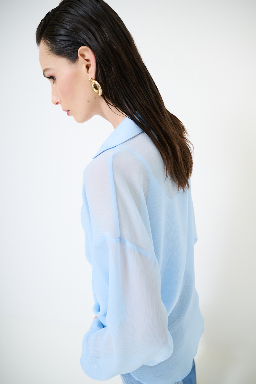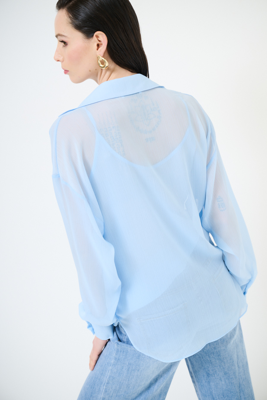 Semi-sheer georgette tunic with camisole and crossed tunic hem, dropped shoulder, 'fir over