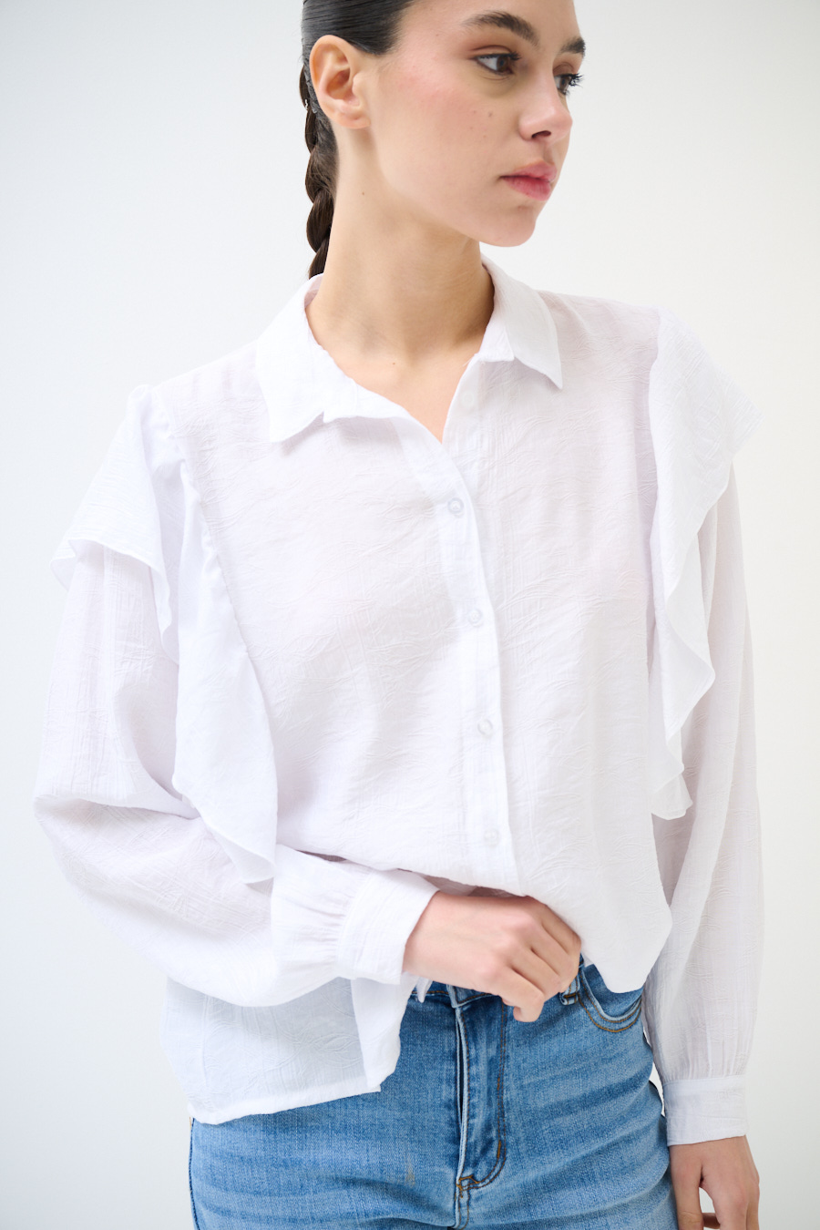 CAMICIA CON MAXI GALA SULLA SPALLA BIANCO