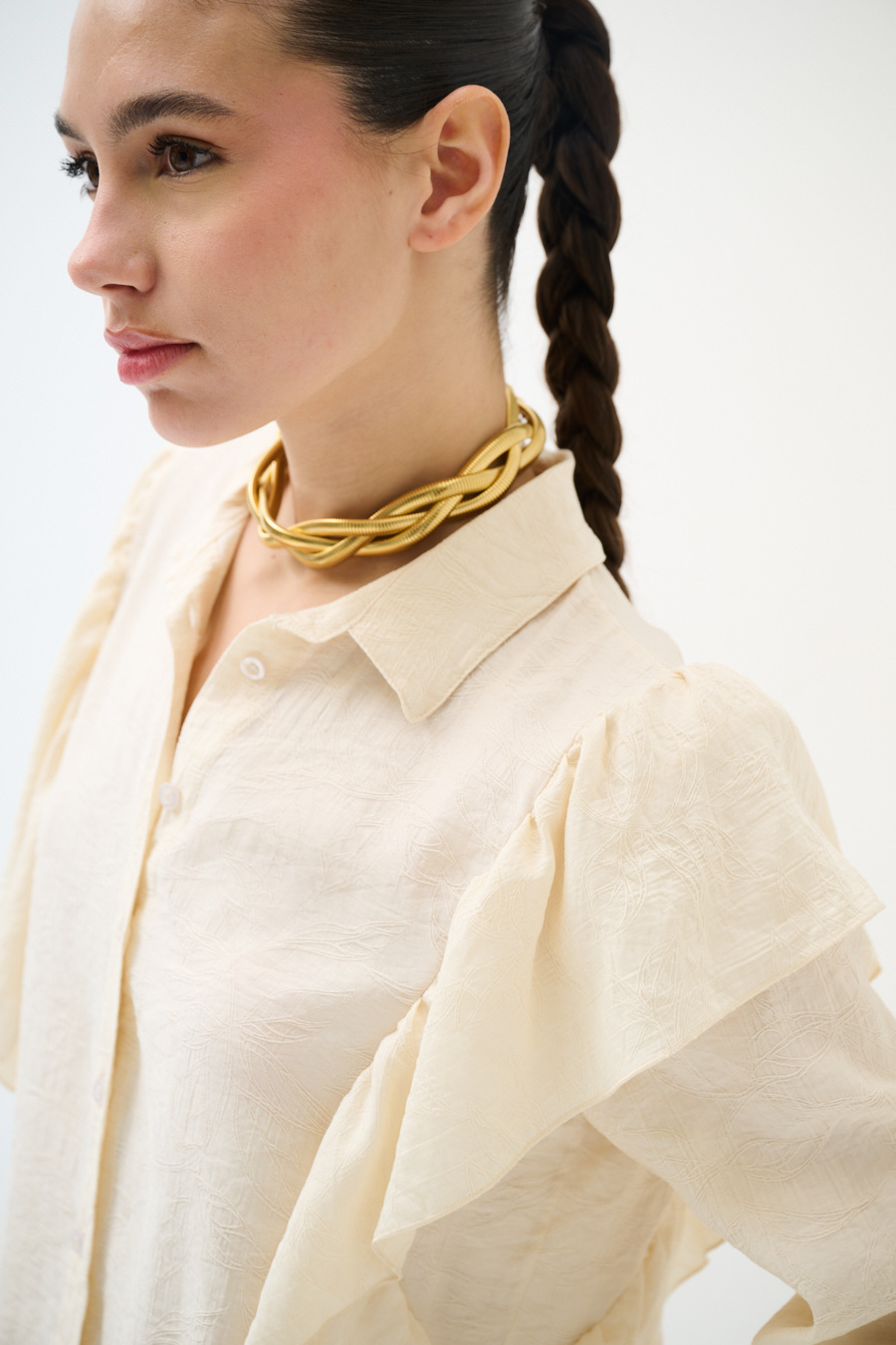 CAMICIA CON MAXI GALA SULLA SPALLA