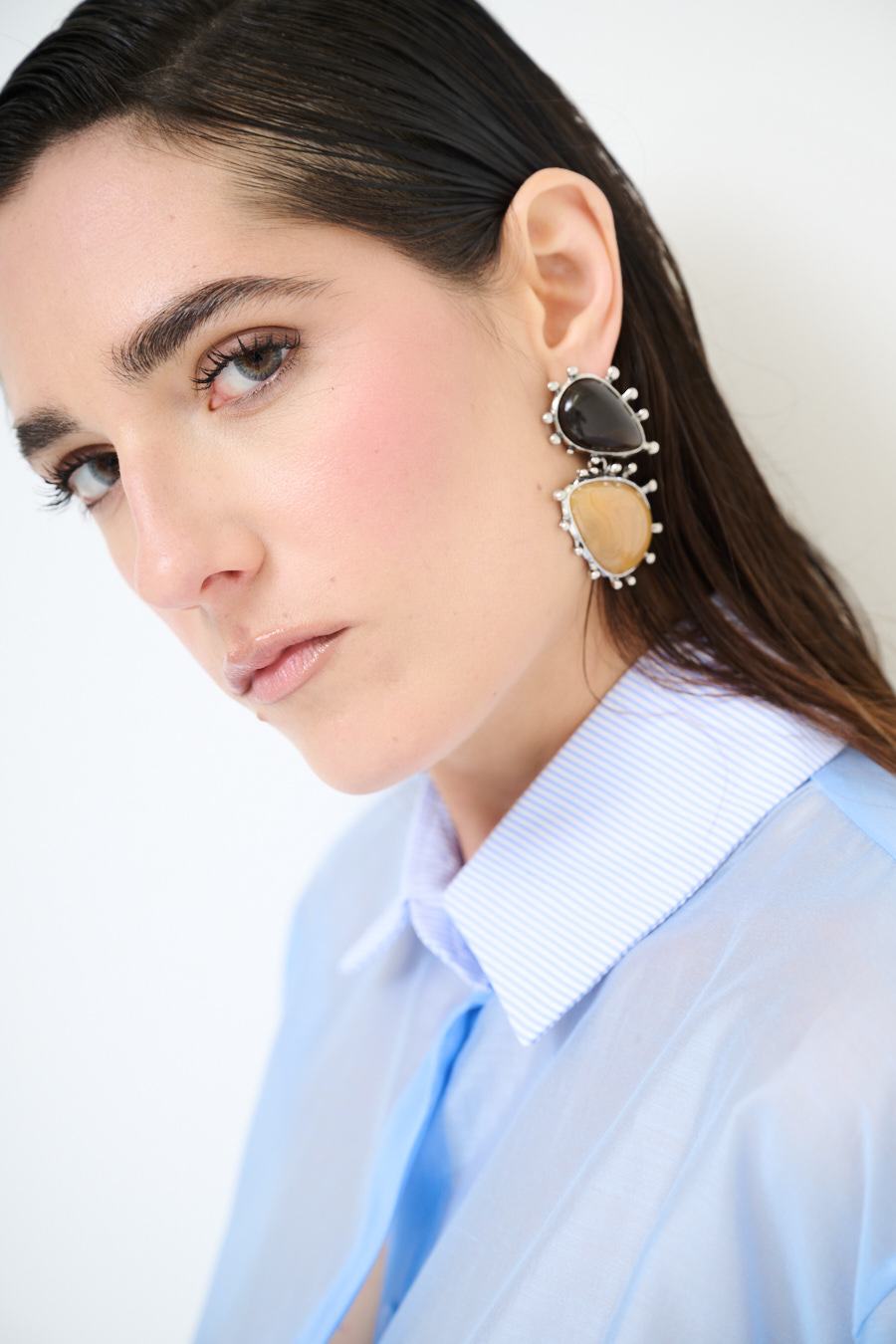 Camicia in lyocell leggera con manica lunga e colletto e polsini a contrasto a righe in cotone
