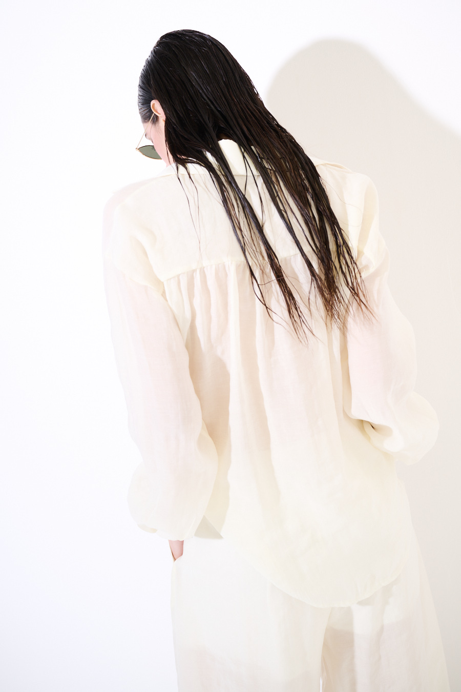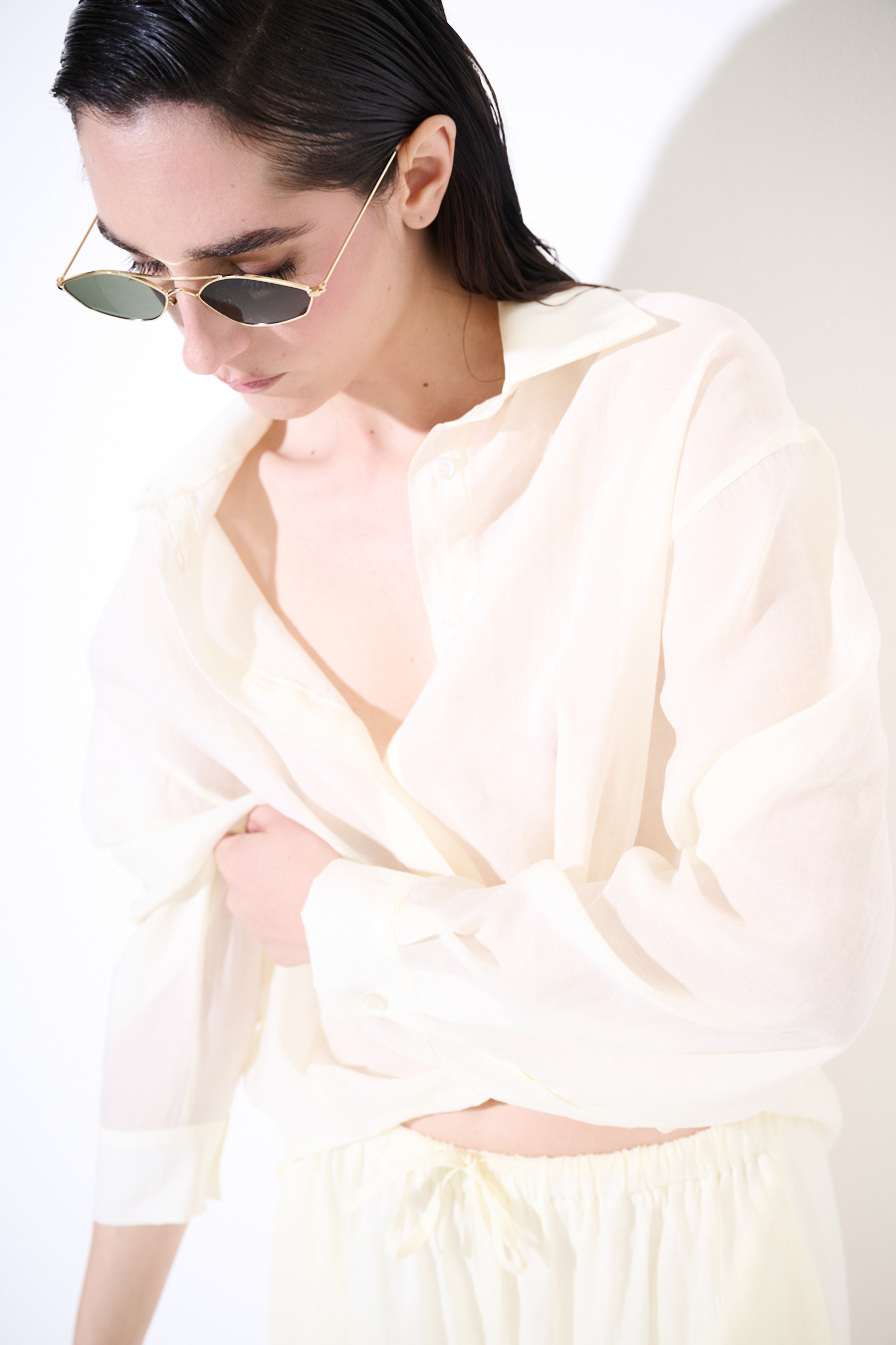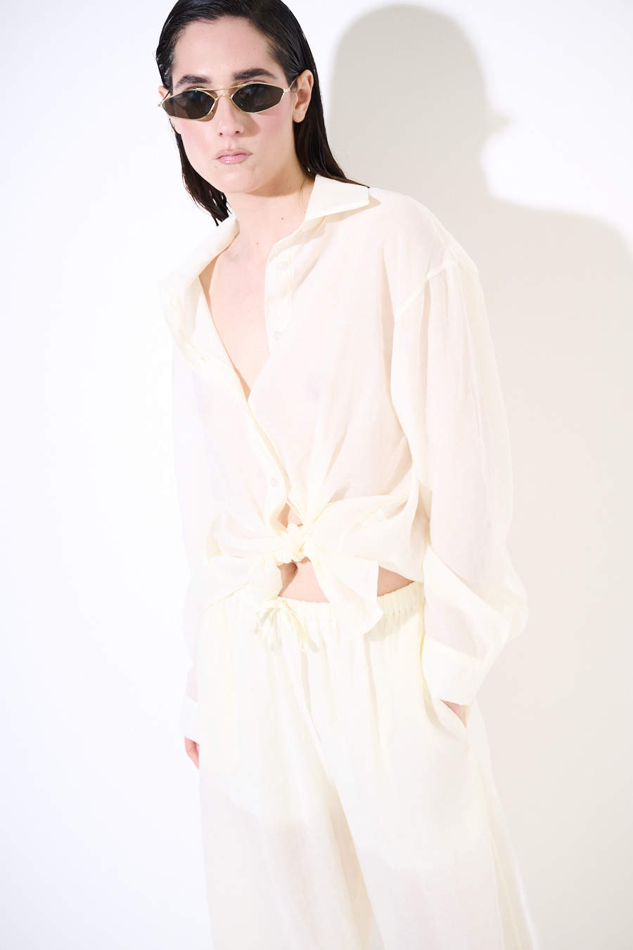 Camicia in lyocel leggera con manica lunga, e annodata sul fondo