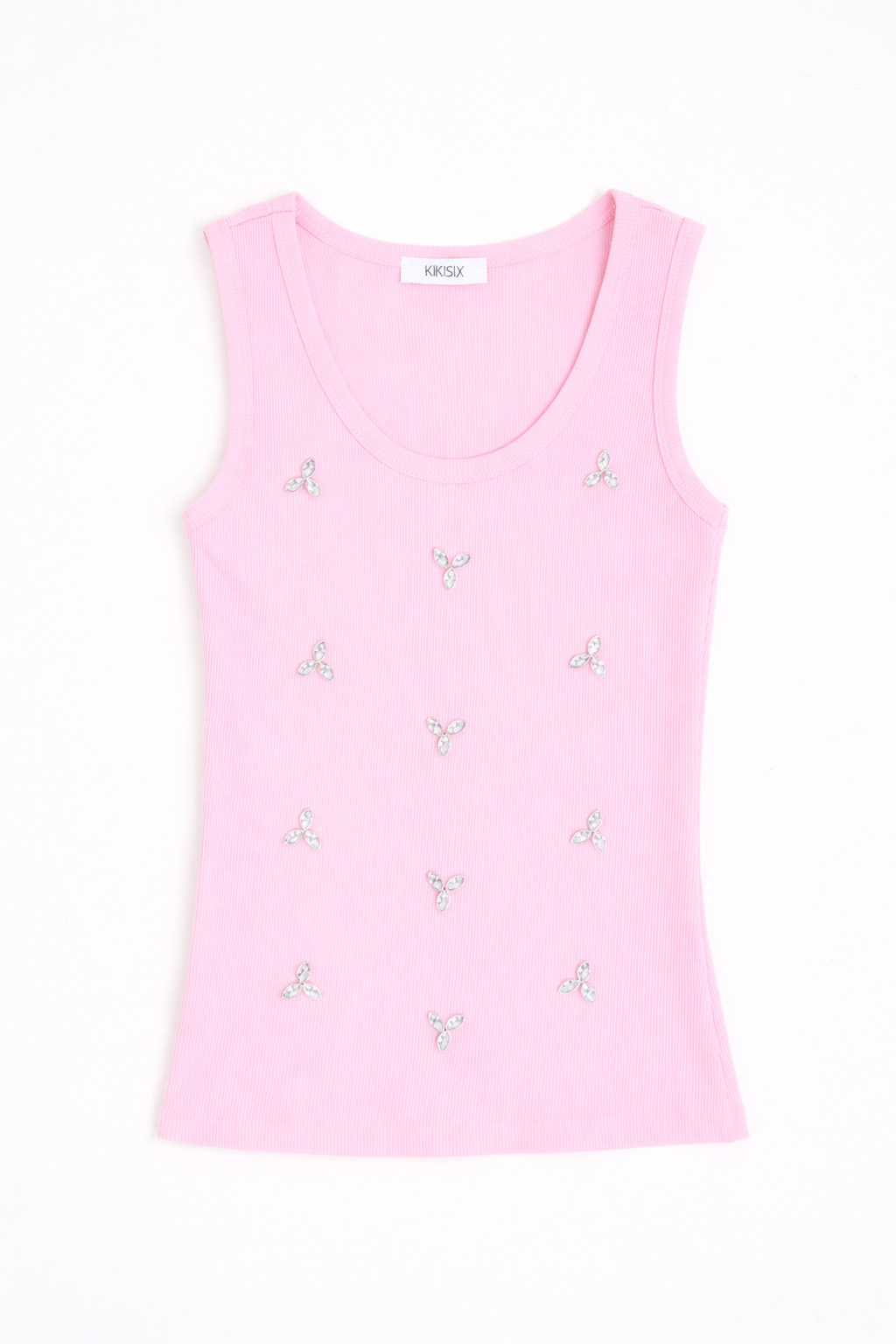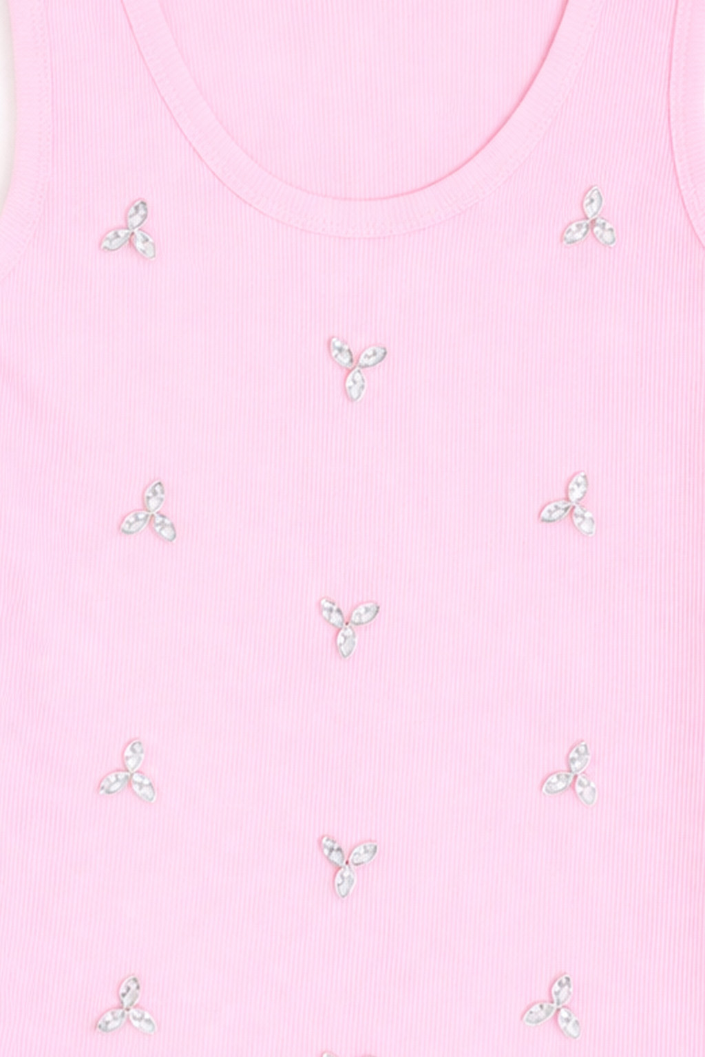 Ribbed racerback tank top with jewel stud appliqués on the front