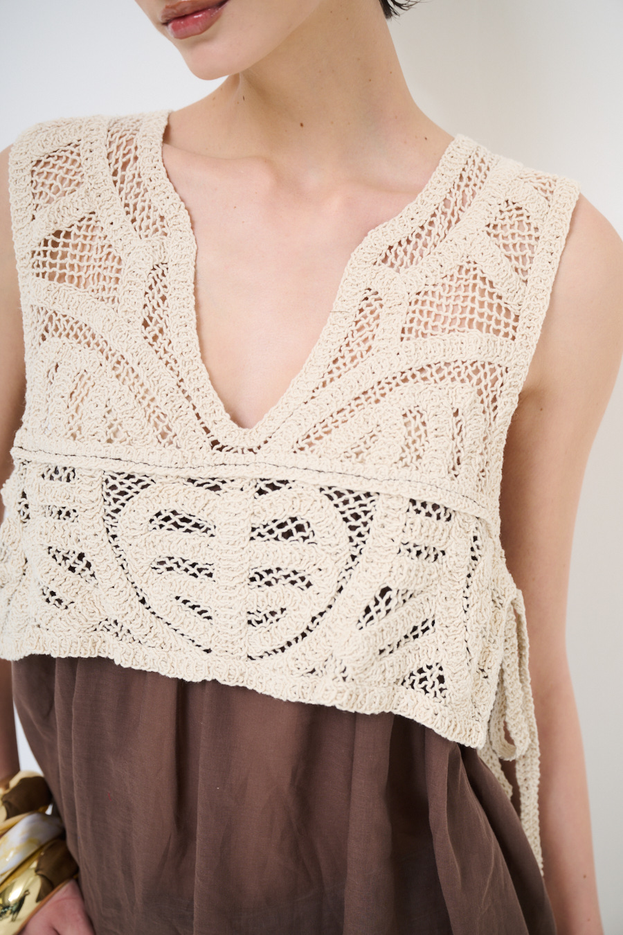CANOTTA IN MUSSOLA CON TOP MACRAME MOKA