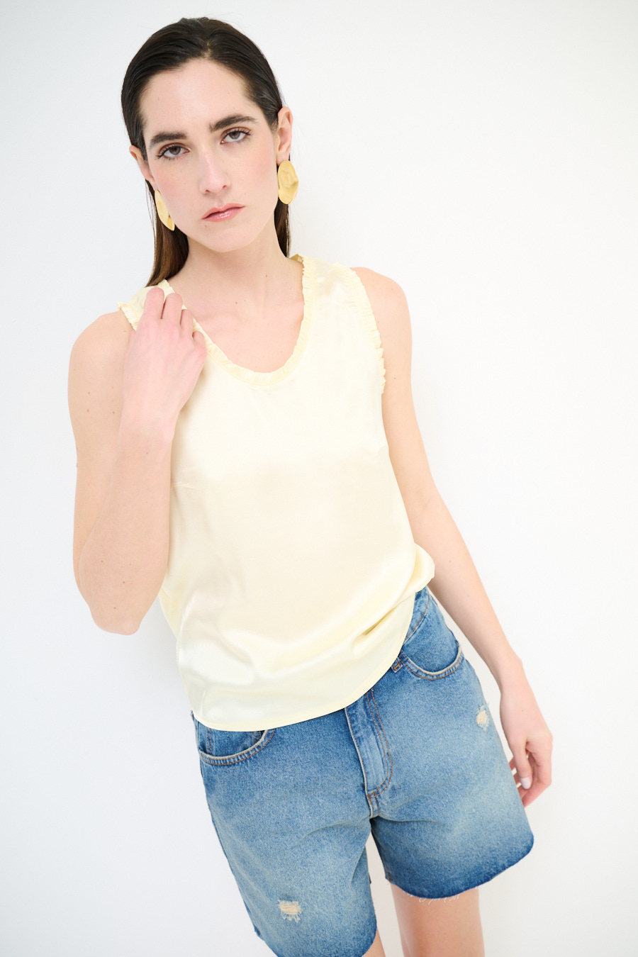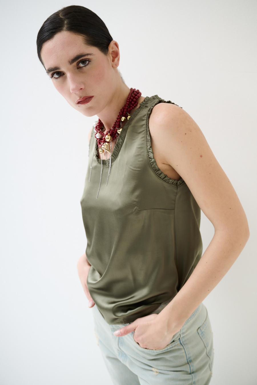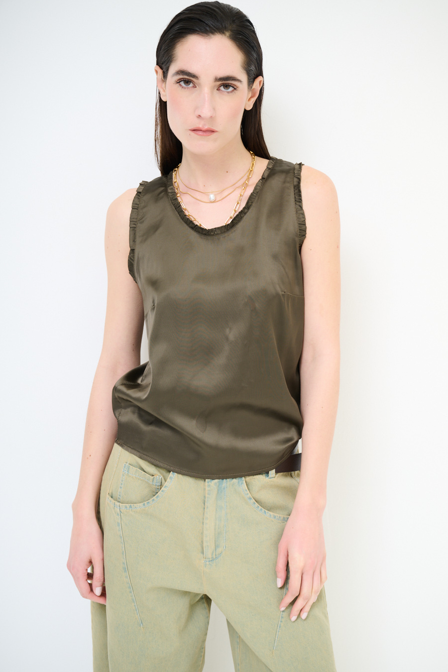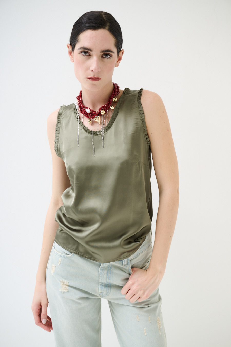 CANOTTA IN RASO VISCOSA CON ROUCHES