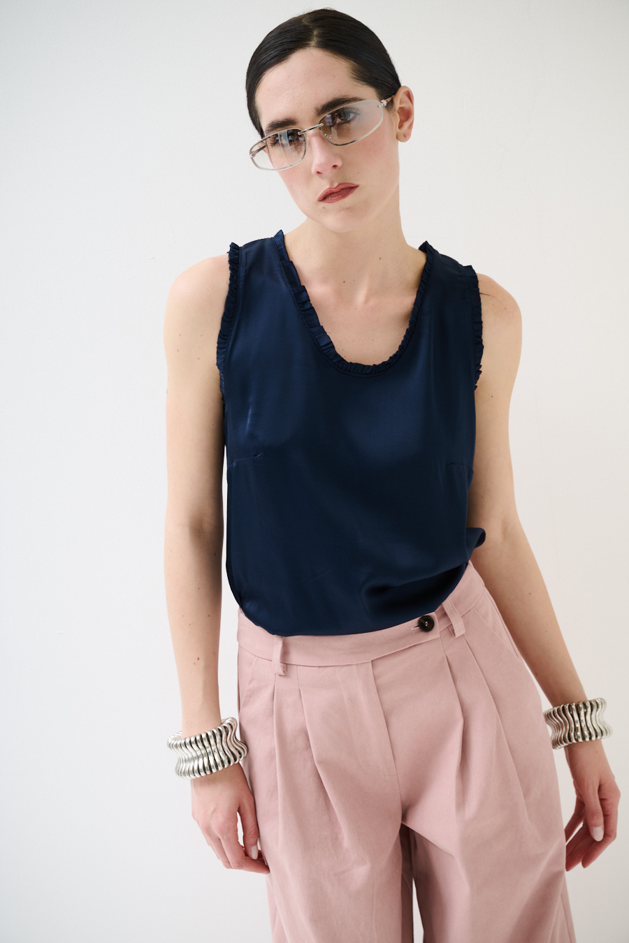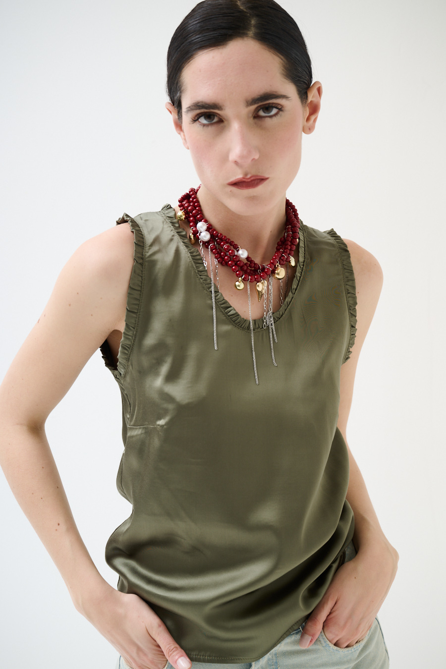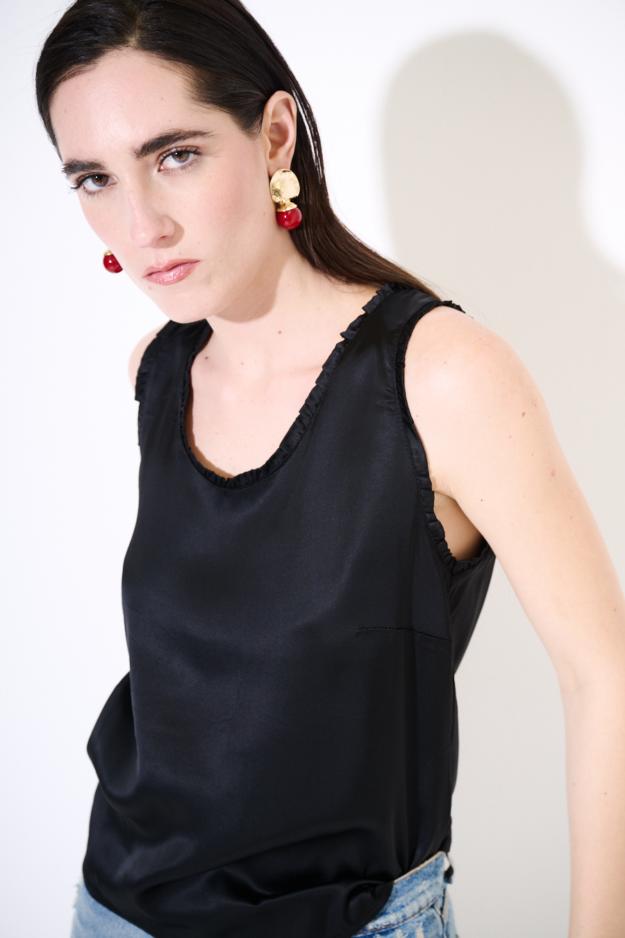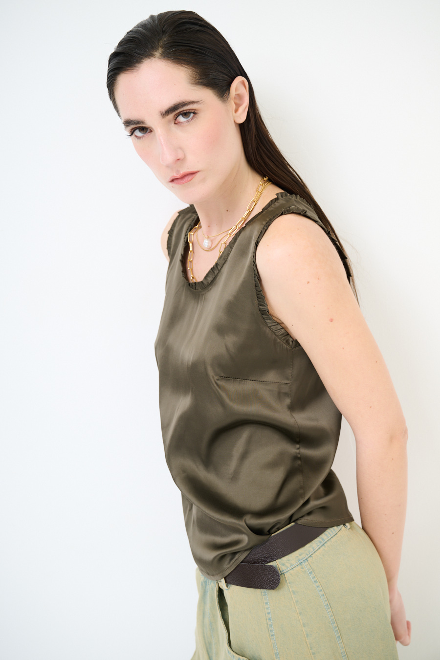 CANOTTA IN RASO VISCOSA CON ROUCHES