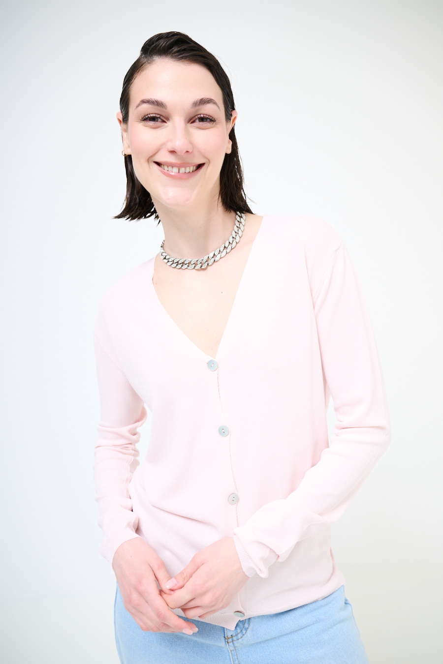 CARDIGAN MANICA LUNGA CON SCOLLO A V ROSA