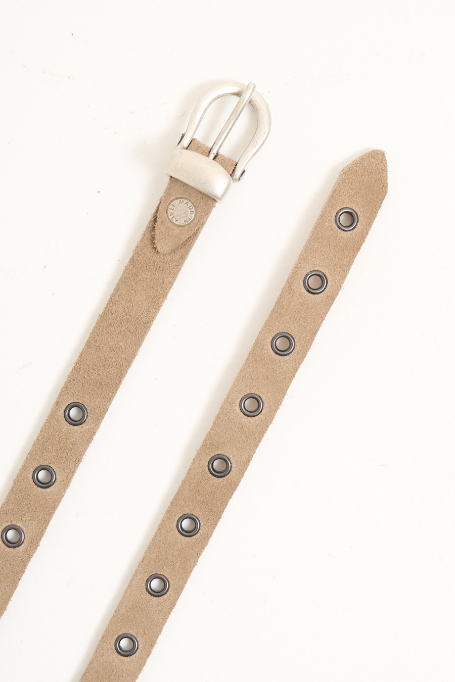 Thin suede multifunctional belt with studs, brushed-effect buckle