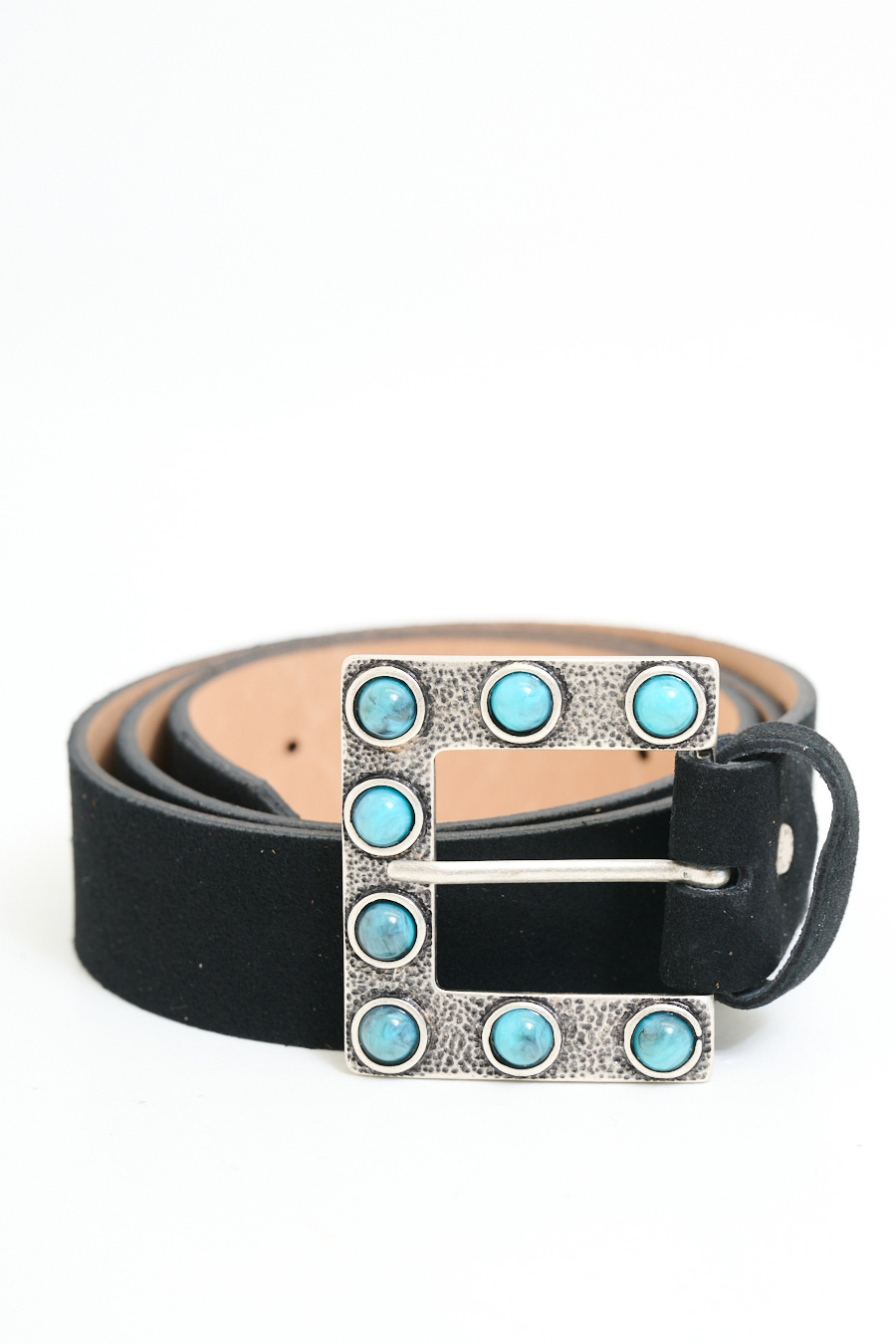 CINTURA SUEDE CON FIBBIA TONDI SMERALDO NERO