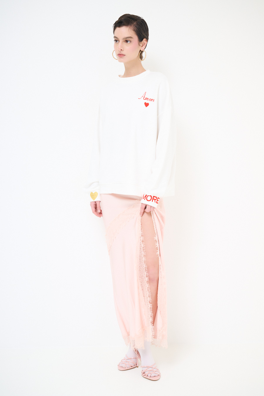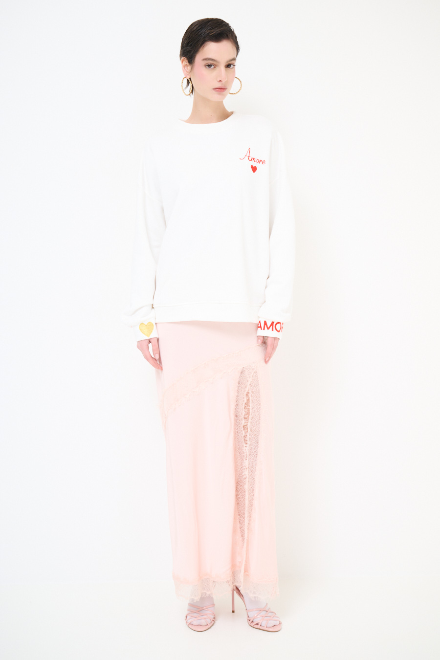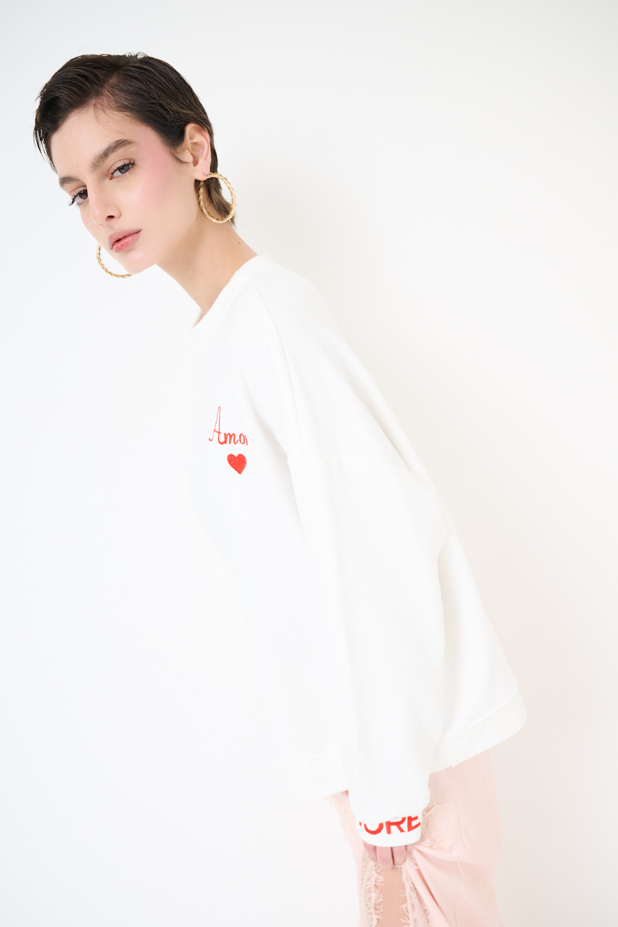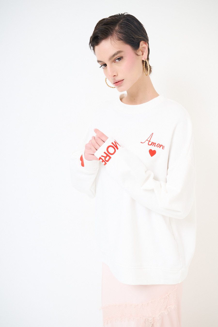FELPA BASIC PARICOLLO RICAMO AMORE PANNA