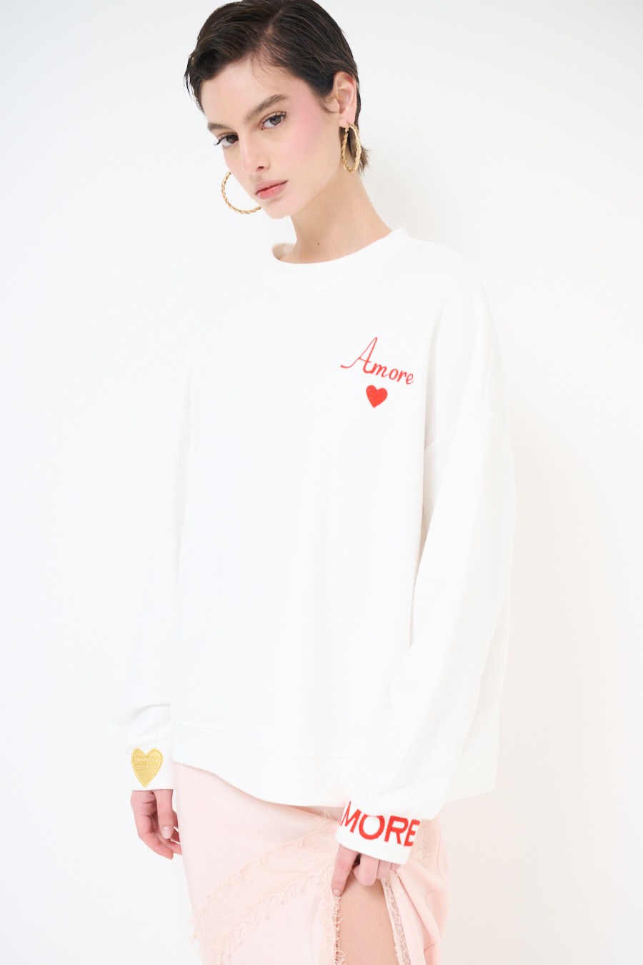 Brushed basic crewneck sweatshirt with 'love' and heart embroidery on the front and on the cuffs