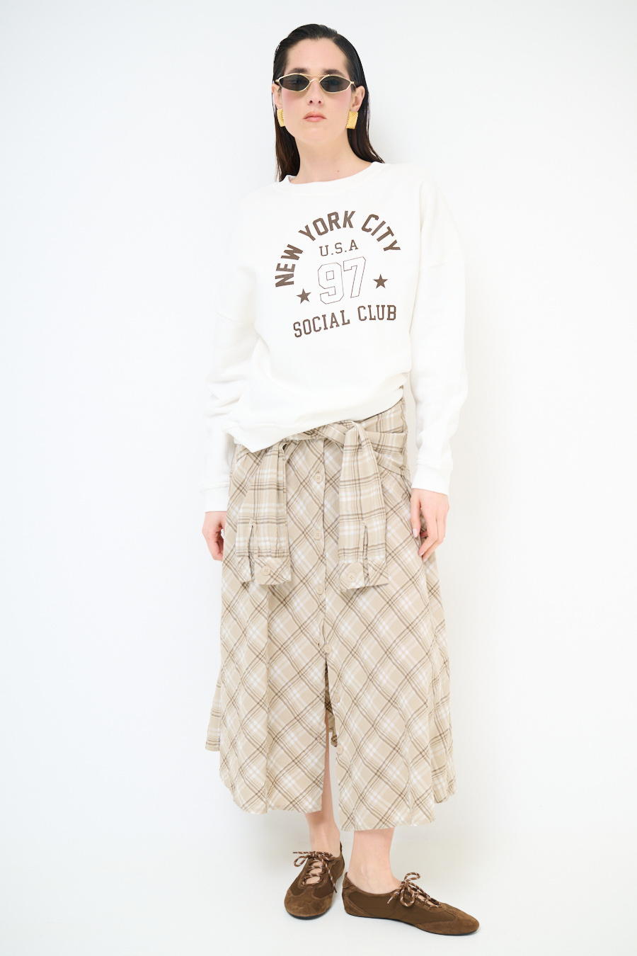ABITO CHEMISIER MIDI A QUADRI CON CINTURA