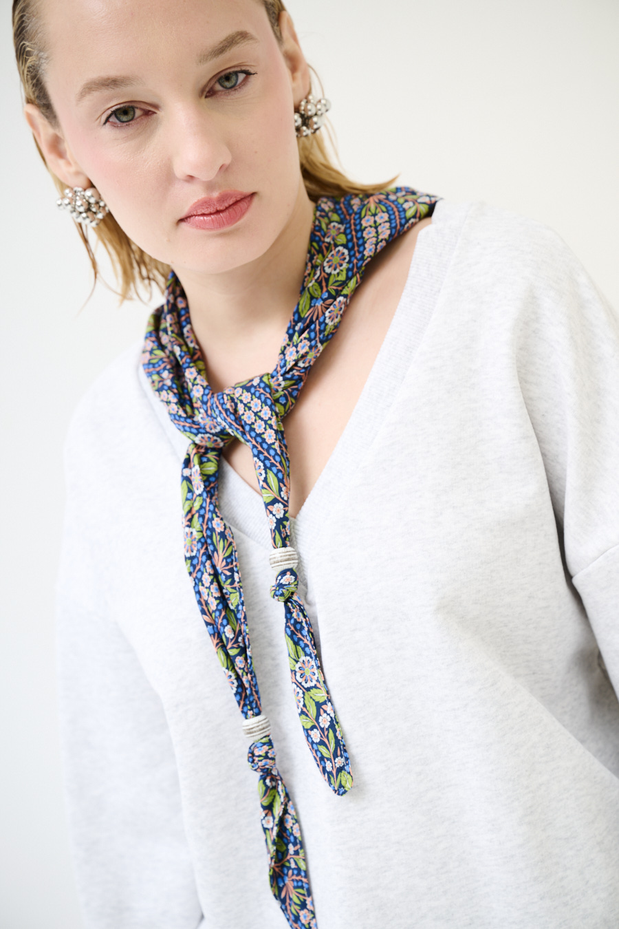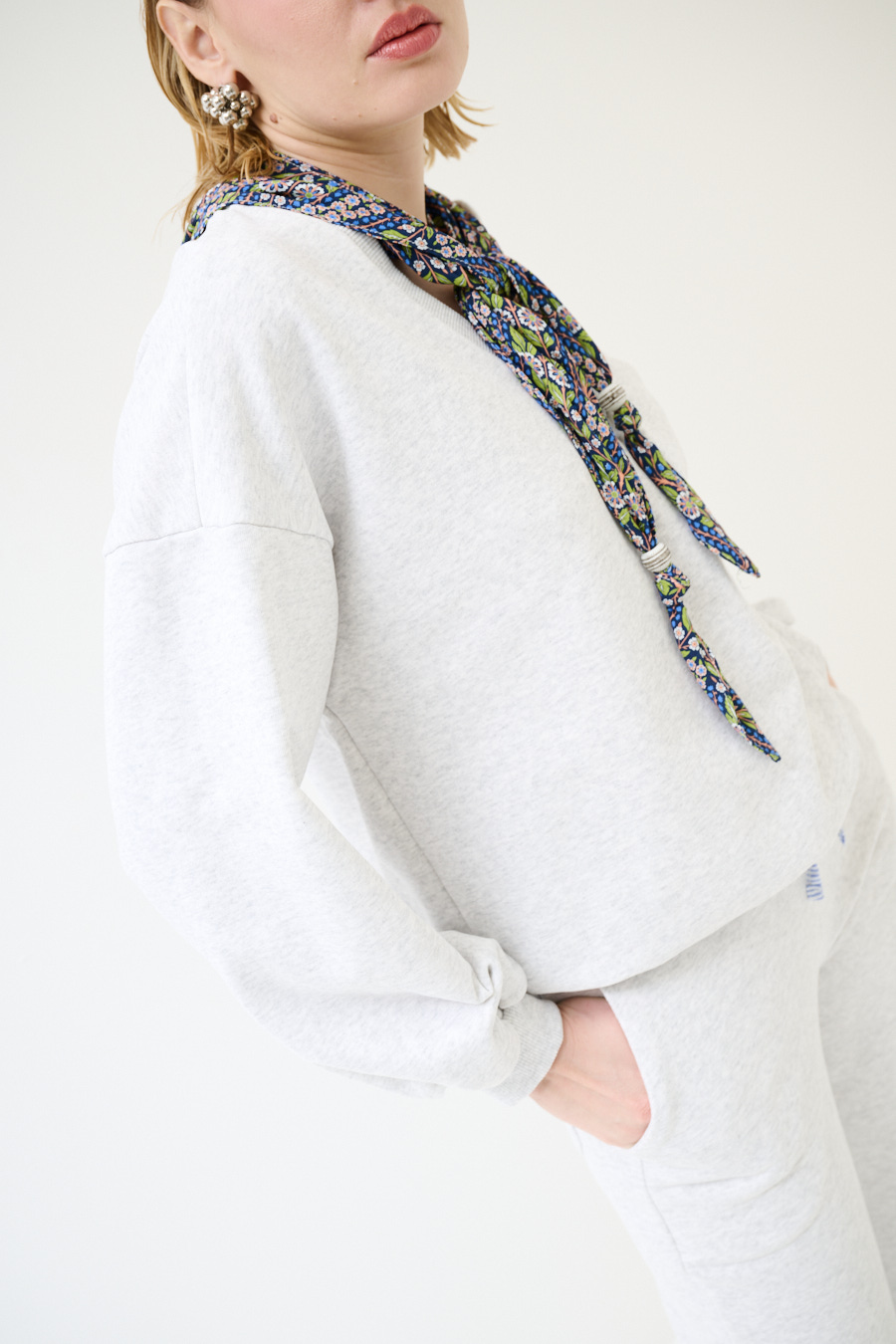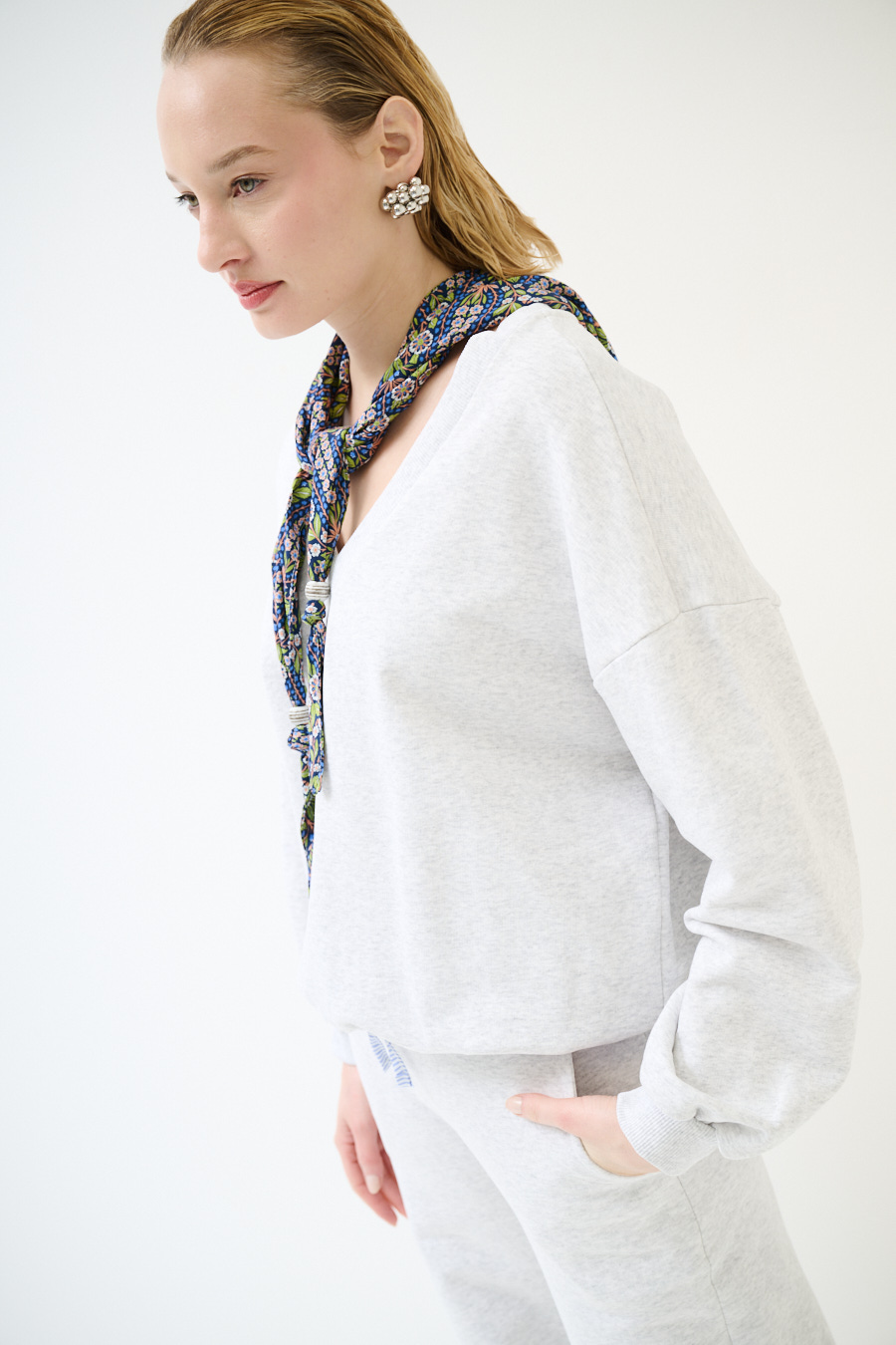 FELPA OVER SCOLLO V + FOULARD GRIGIO CHIARO