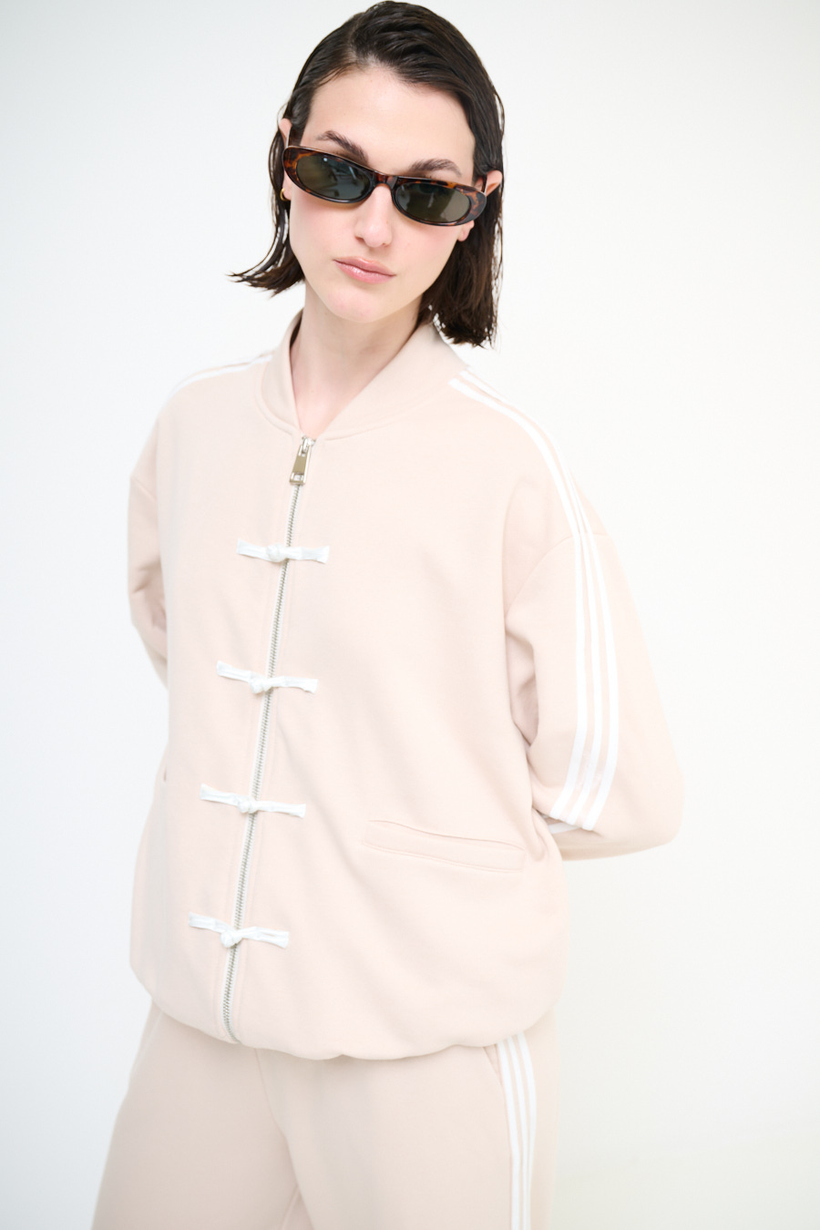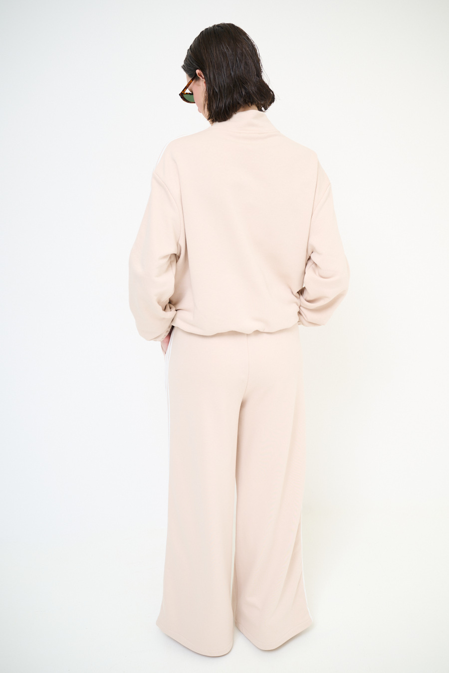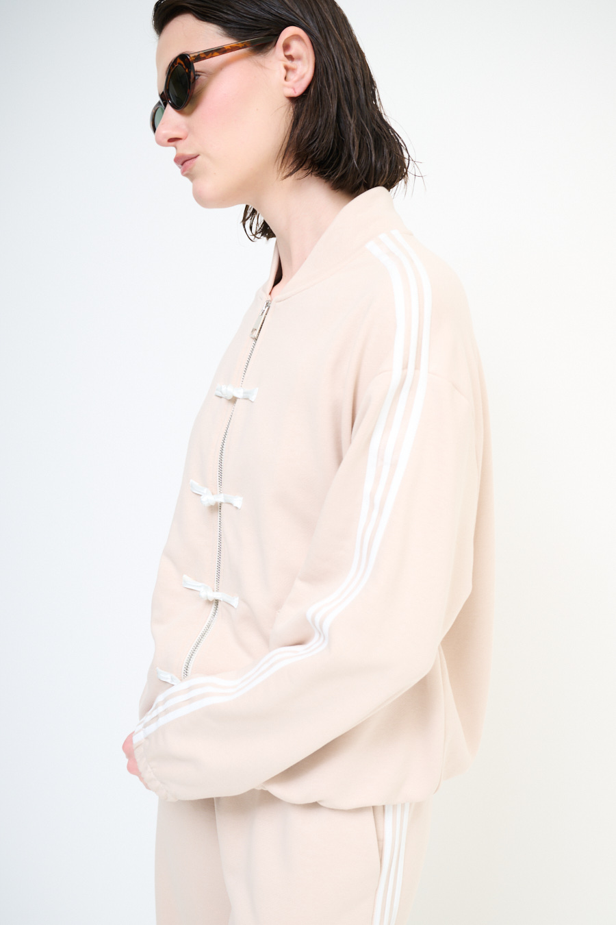 FELPA ZIP CON BANDE BIANCHE E ALAMARI SABBIA