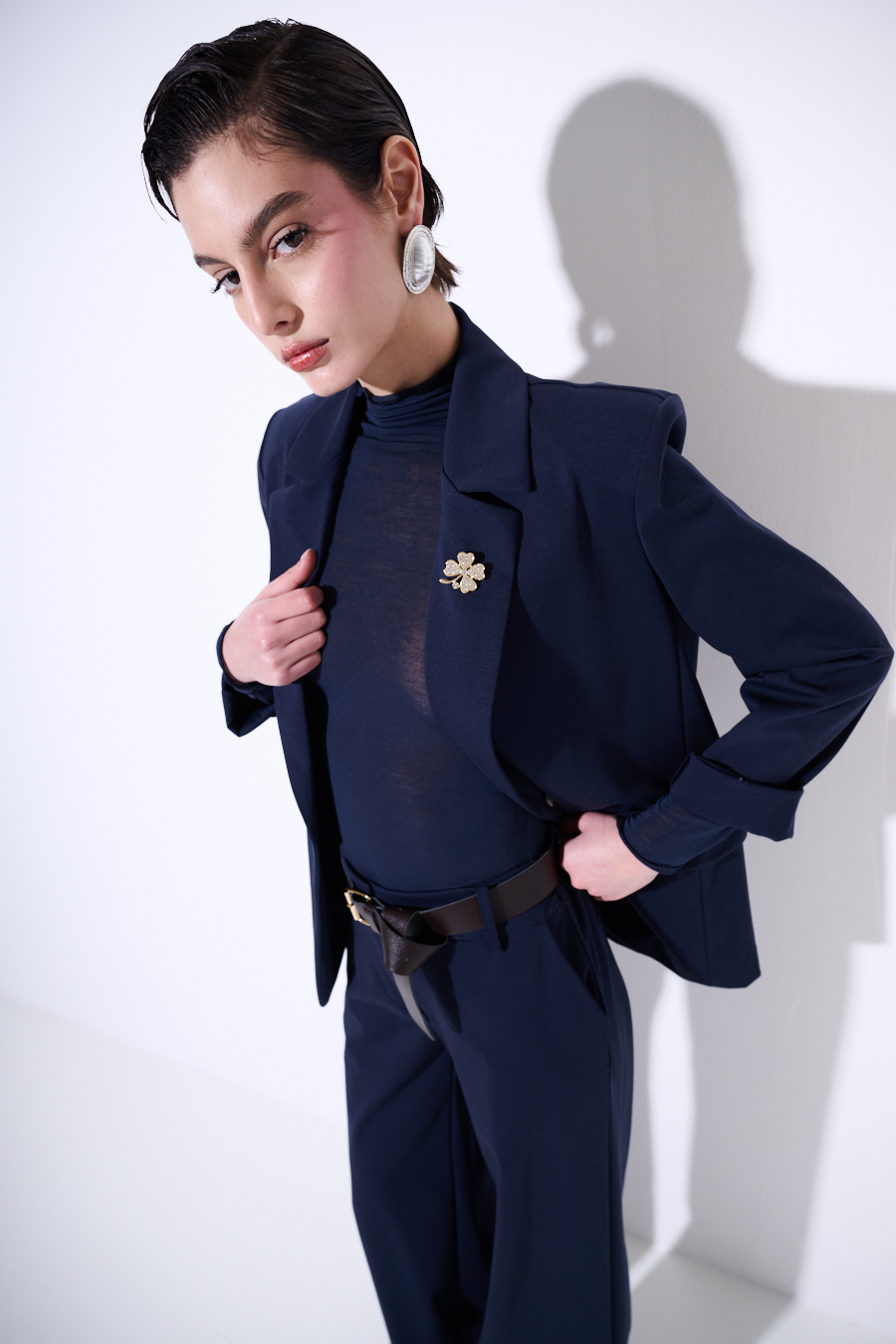 Basic one-button Milano stitch jacket with front flap pockets, padded shoulders and slim fit