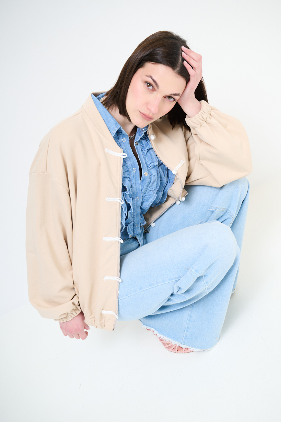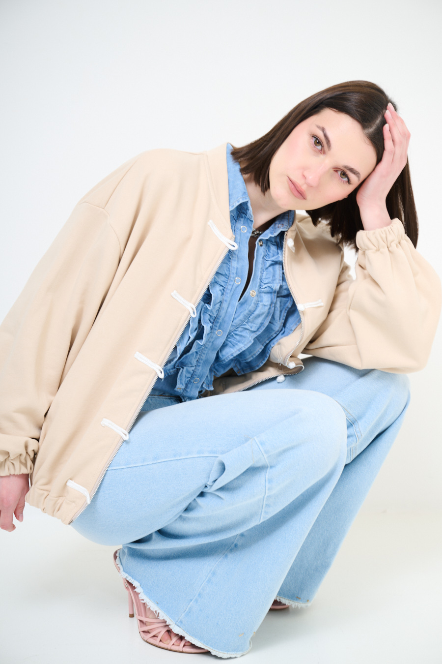 BOMBER CON MANICA IN MACRAME A CAMPANA BEIGE
