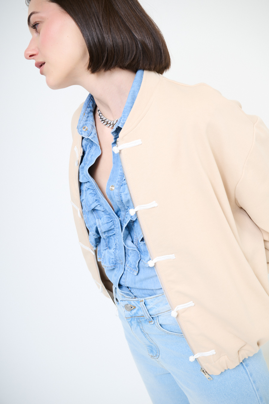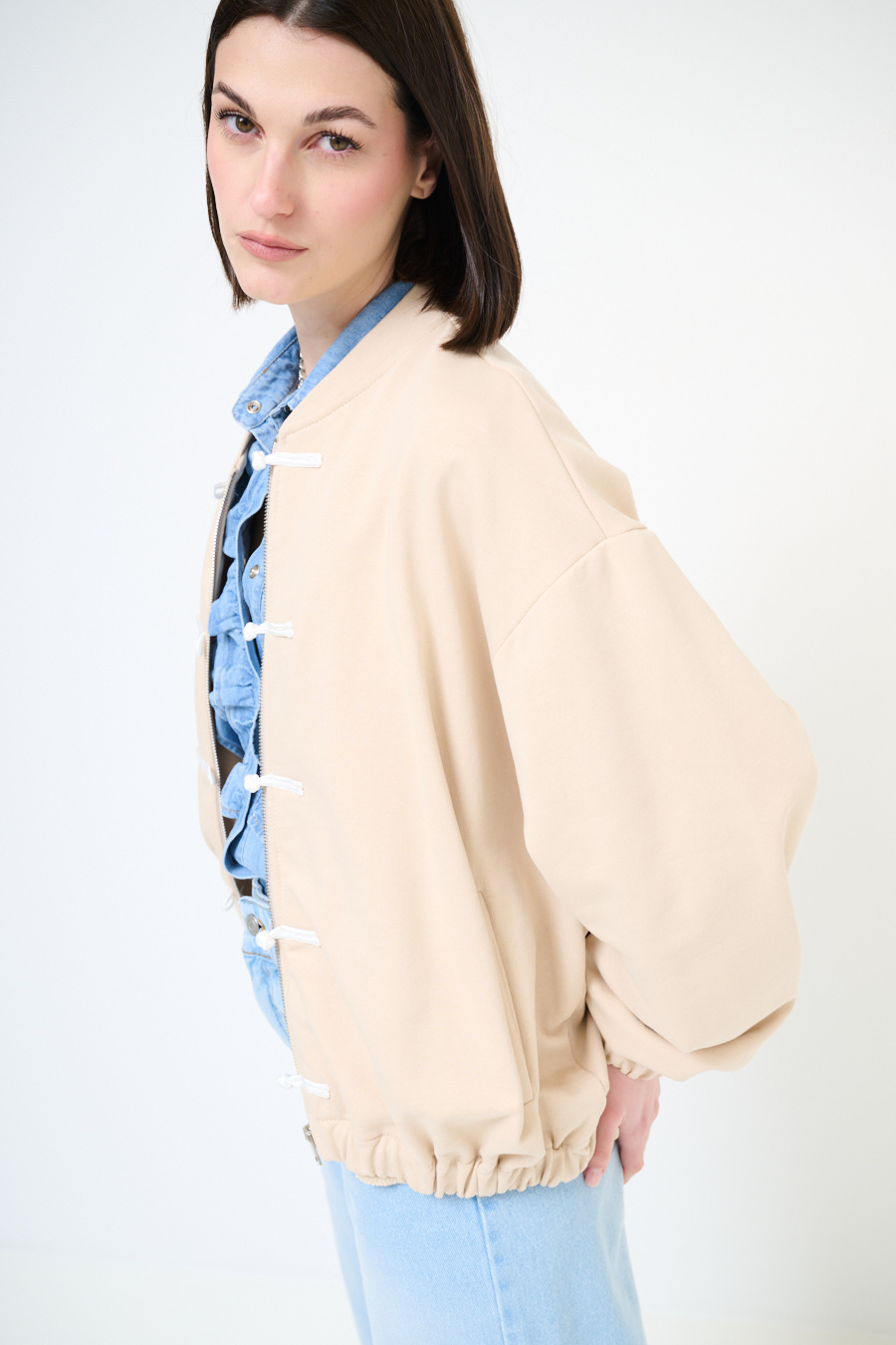 GIACCA FELPA ZIP CON DOPPIA CHIUSURA ALAMARI AVORIO