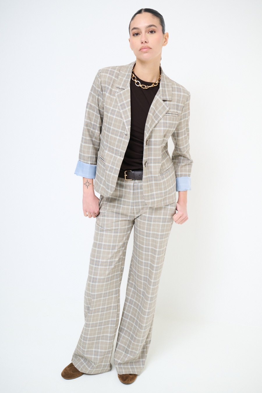 GIACCA SCATOLINA A QUADRI MORO/CELESTE