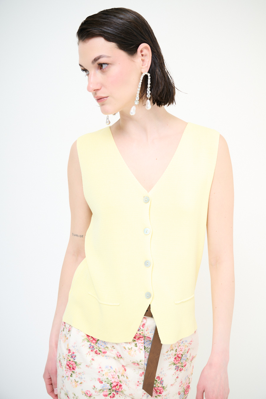 Ribbed viscose vest with V-neck and central buttoning