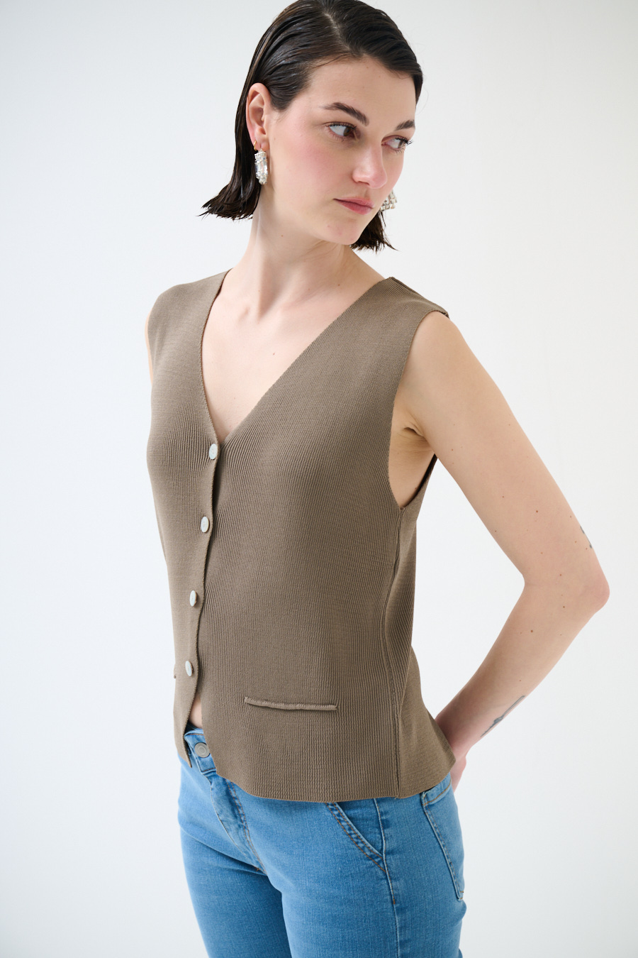 GILET CON BOTTONI A COSTINE FANGO