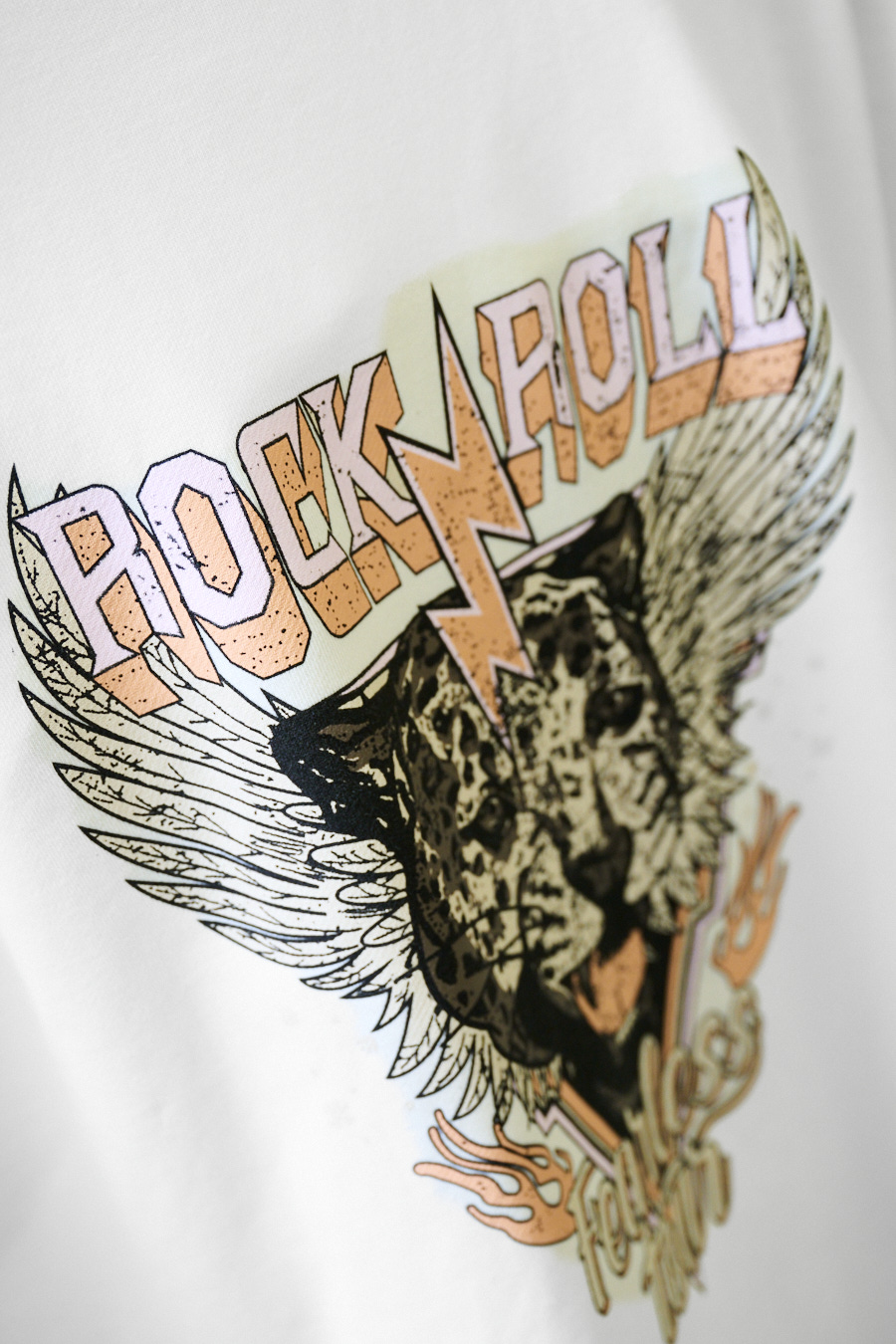 Double-breasted brushed sweatshirt vest with padded shoulders and 'Rock and Roll' print on the back