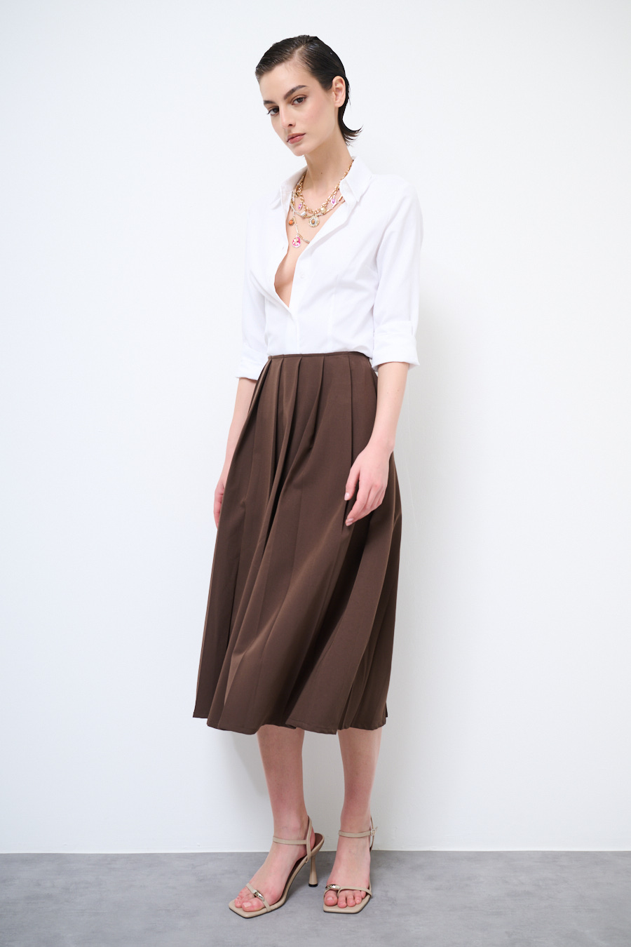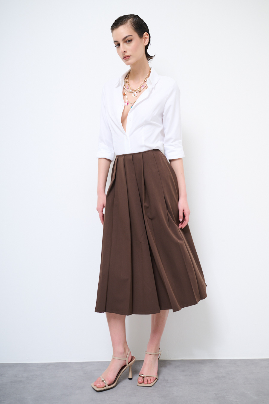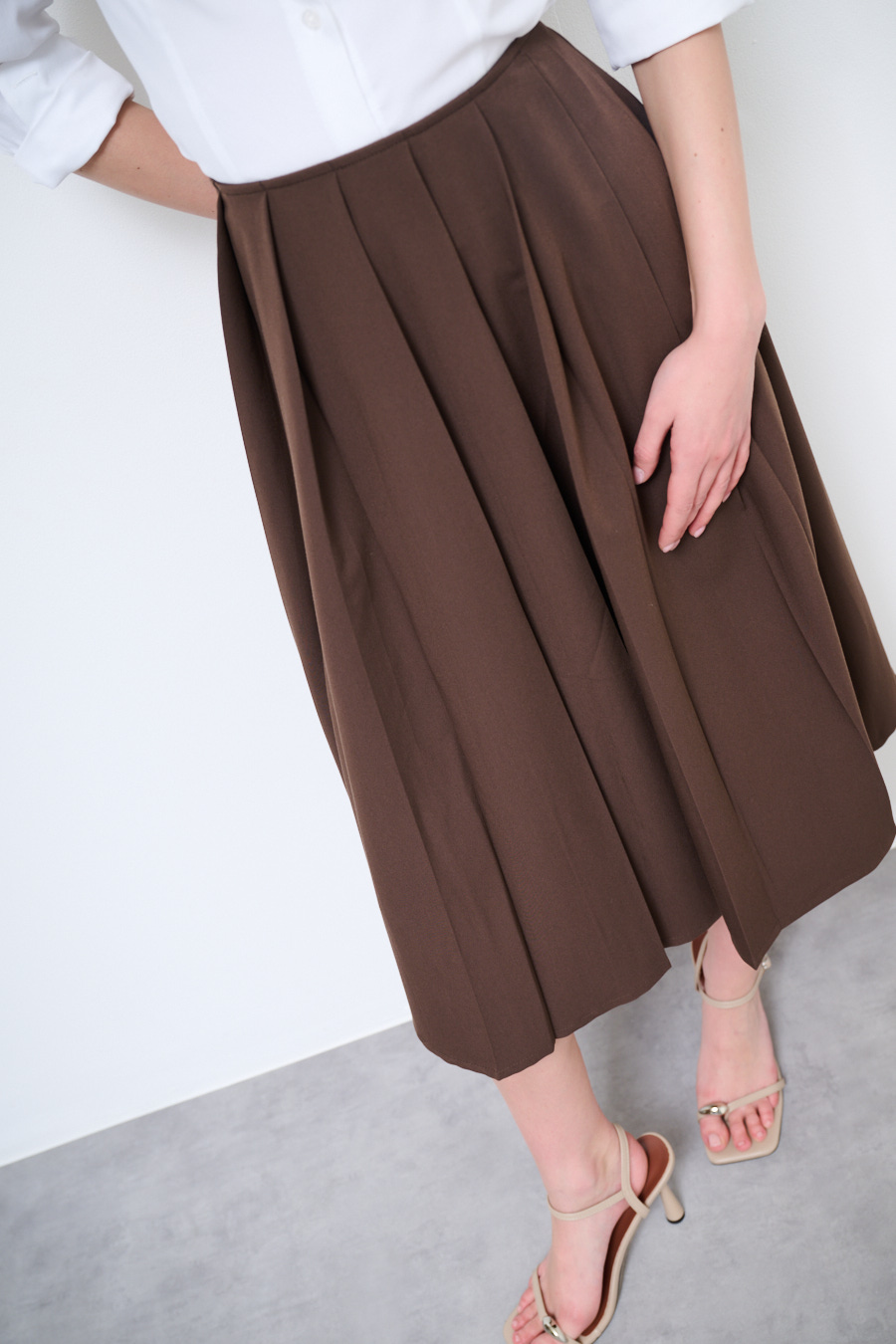 Pleated midi skirt with side zipper closure