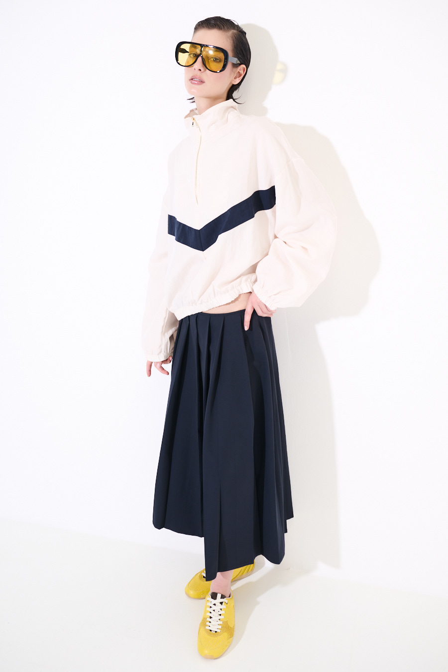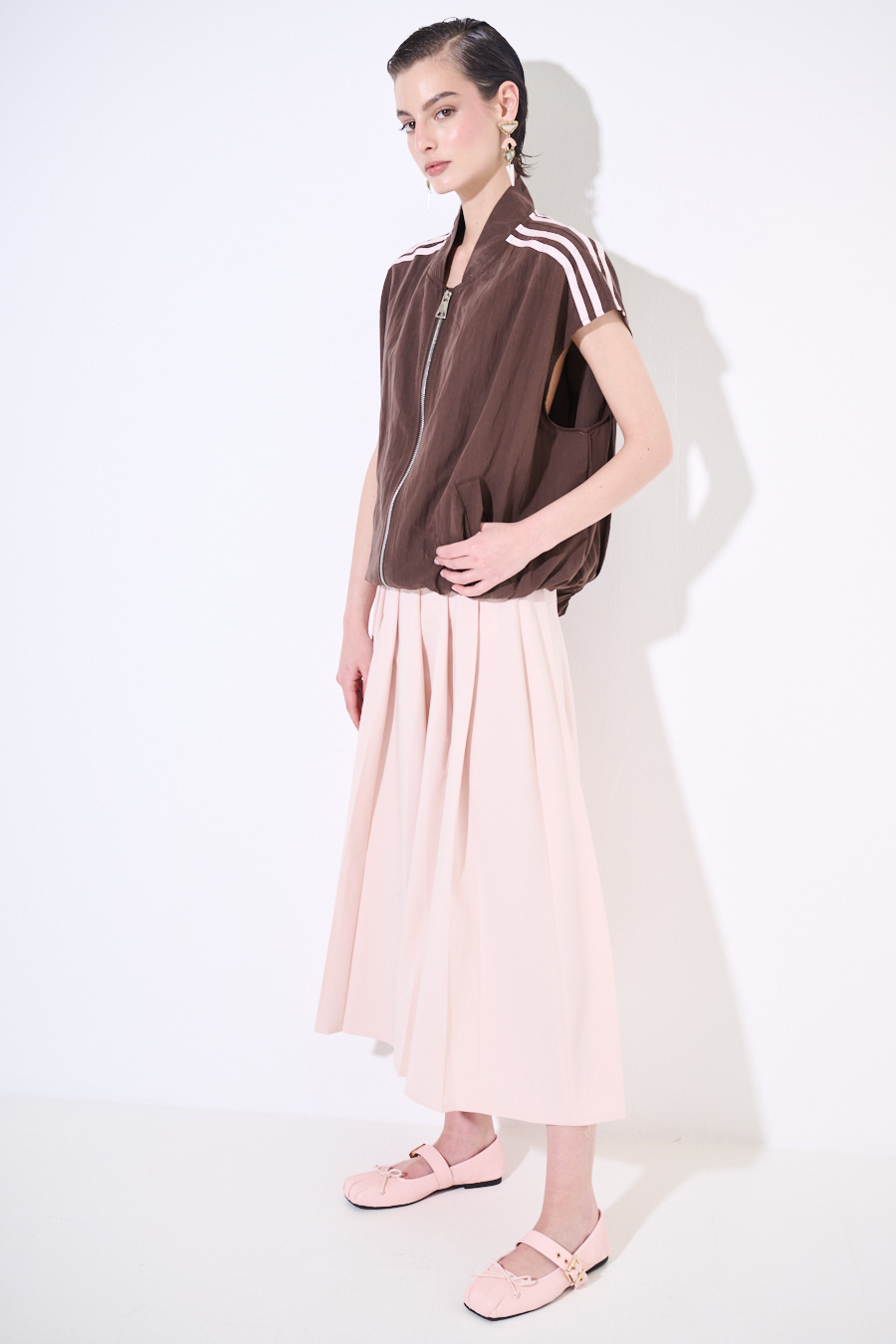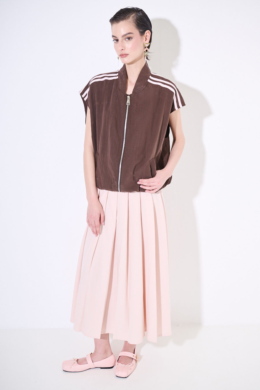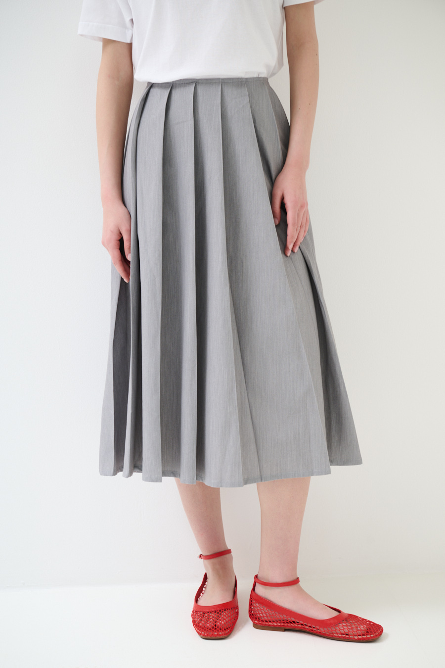 Pleated midi skirt with side zipper closure