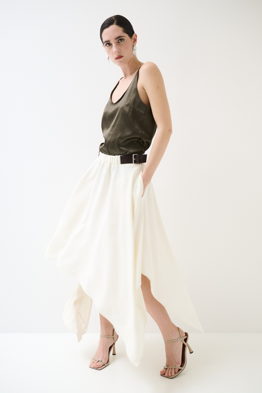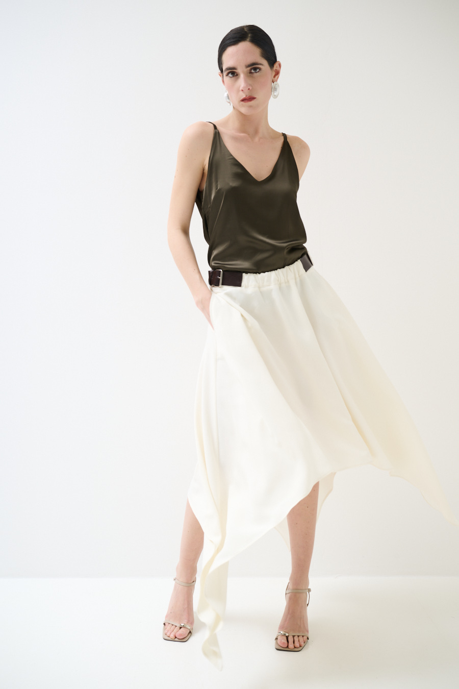 GONNA MIDI CON PUNTE E FIBBIE BURRO
