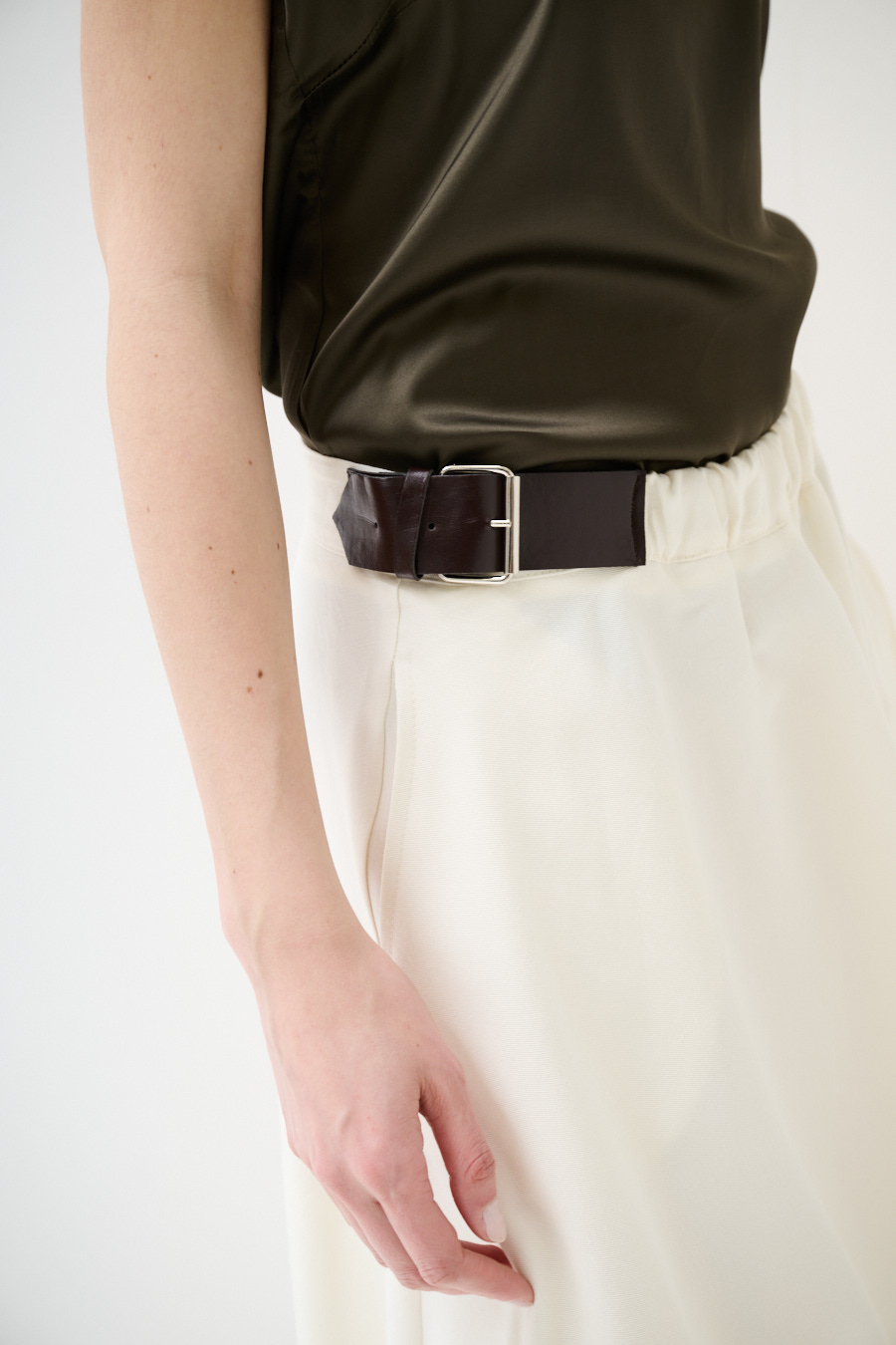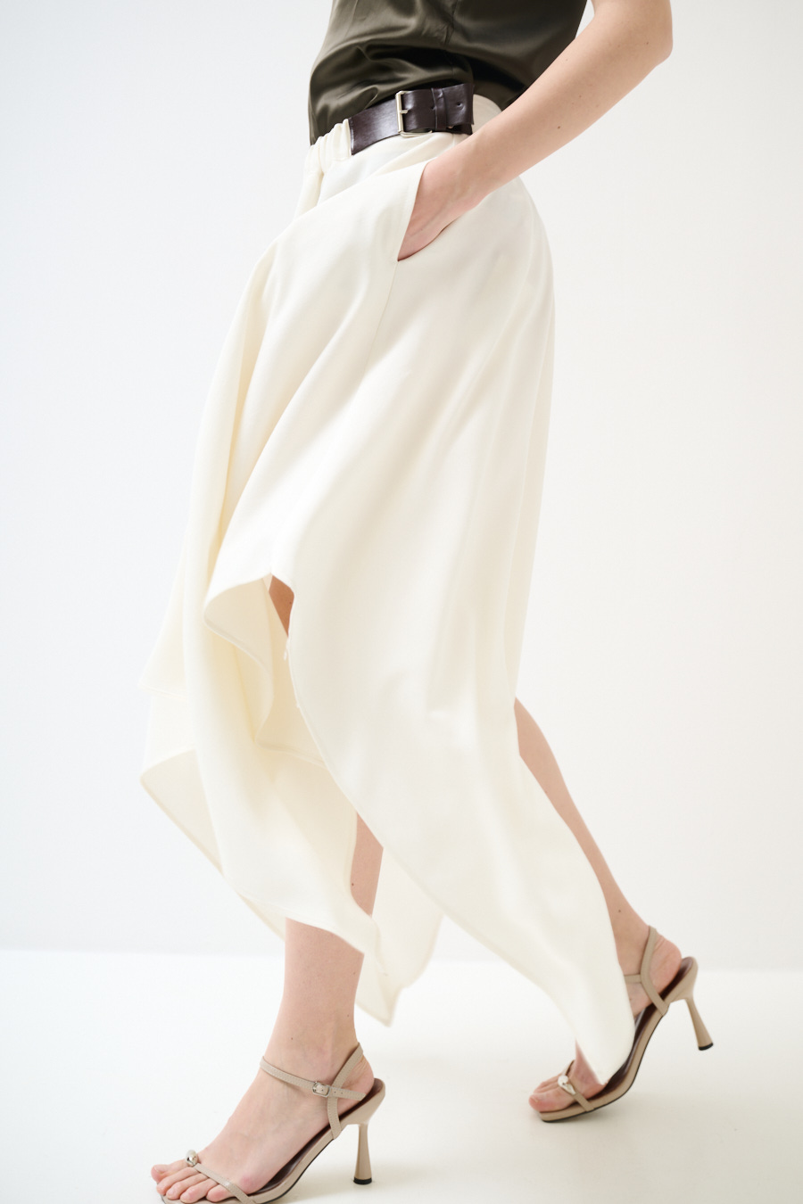 Midi skirt with side slits, buckles on the sides and an elasticated waist