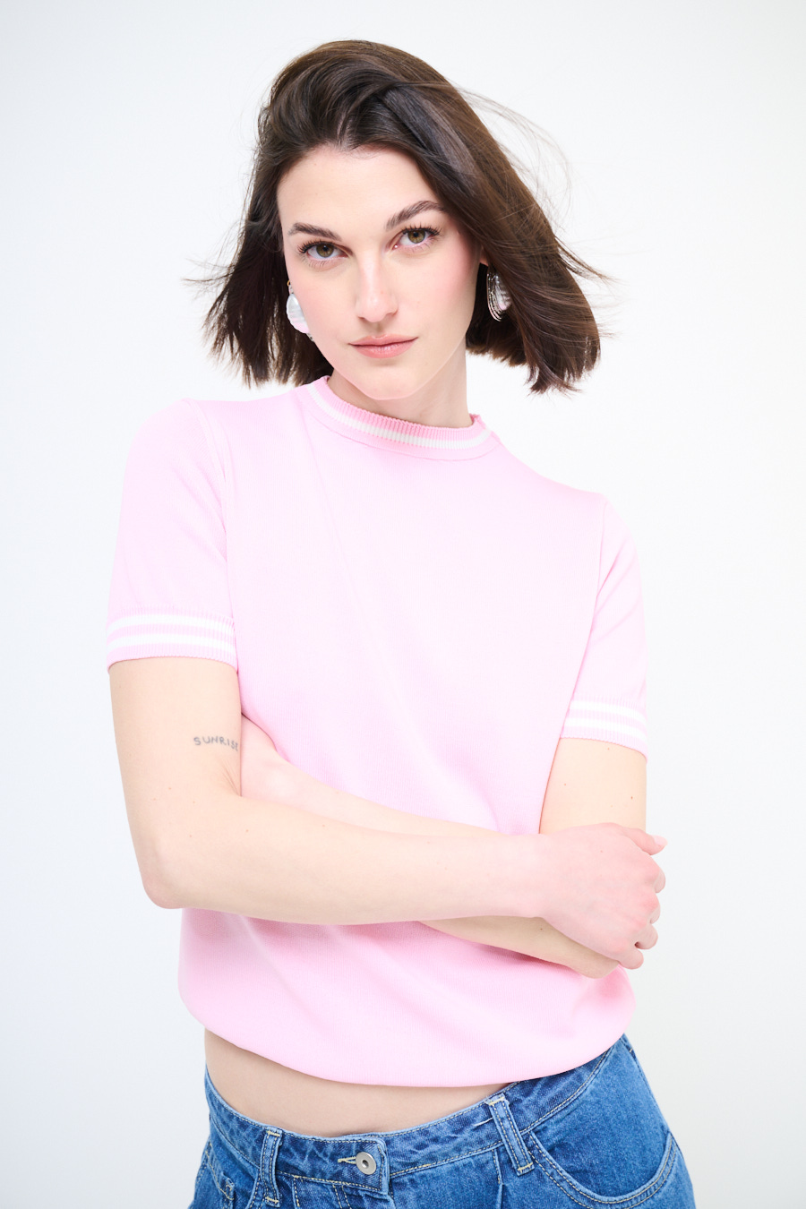 MAGLIA A MEZZA MANICA CON BORDO BICOLORE PINK