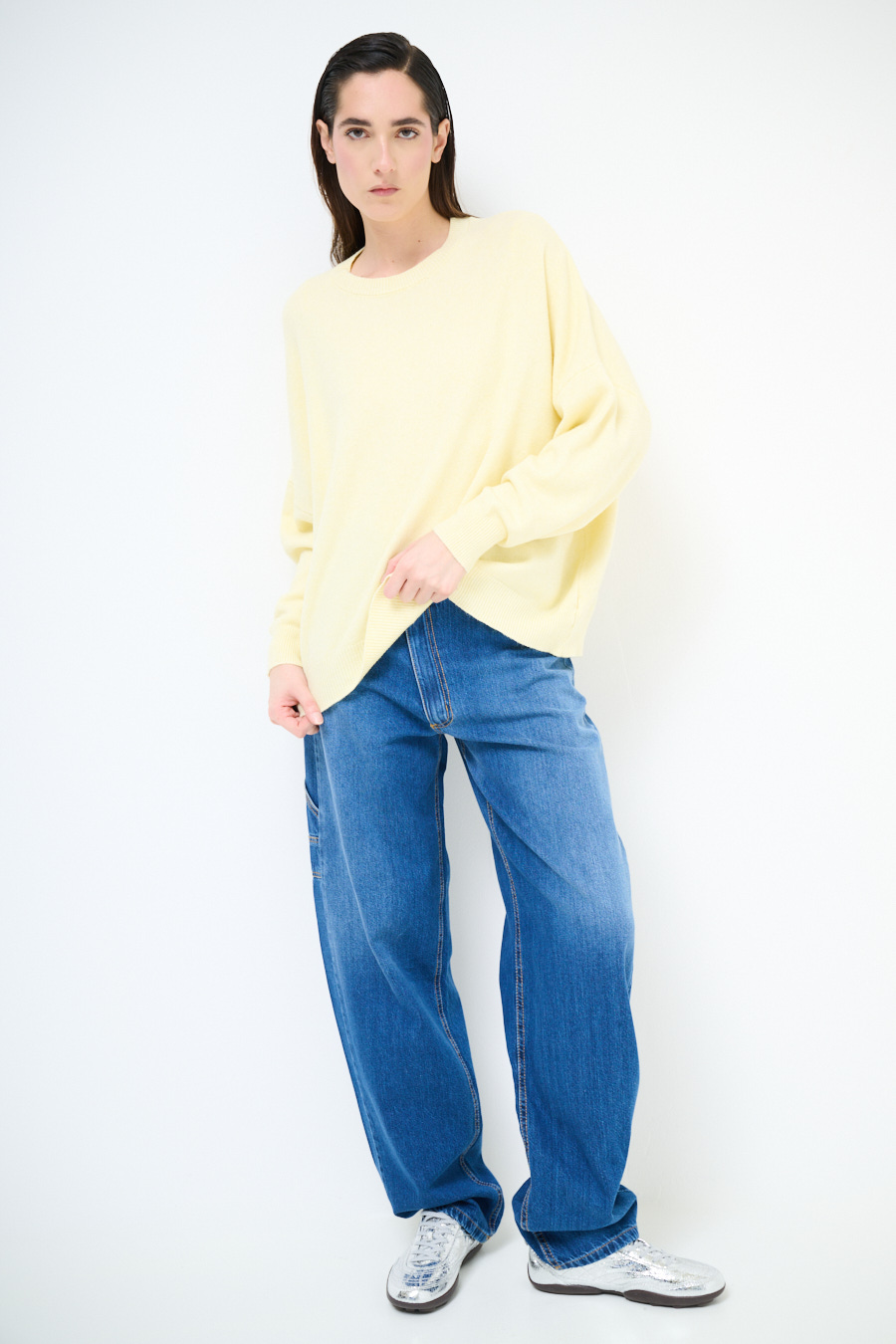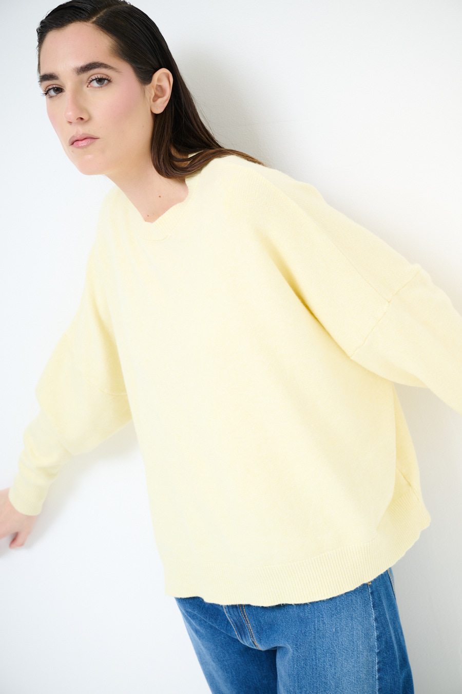 Viscose crewneck sweater with batwing sleeve