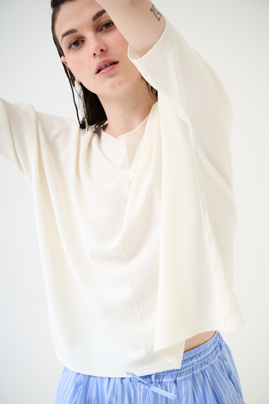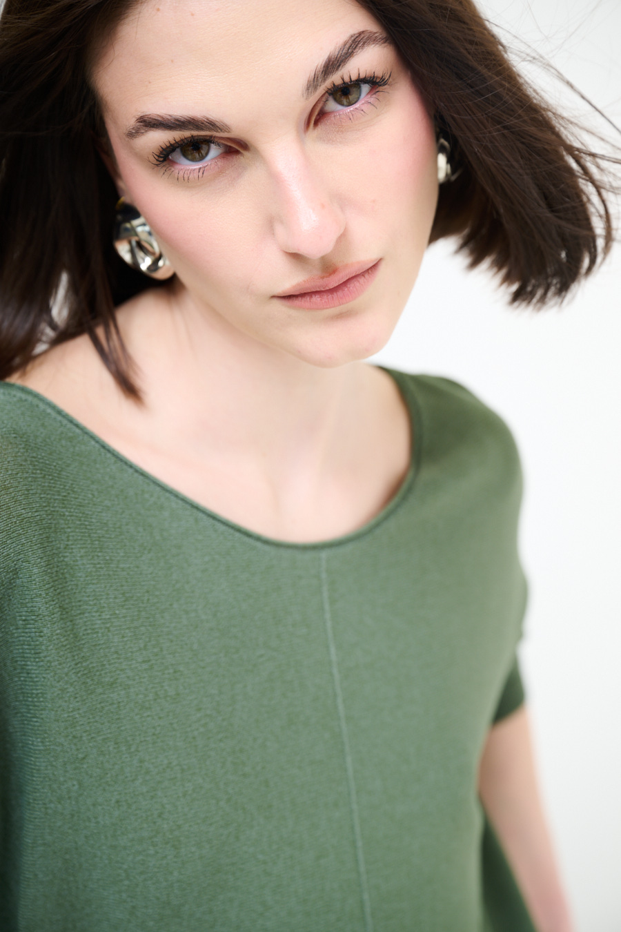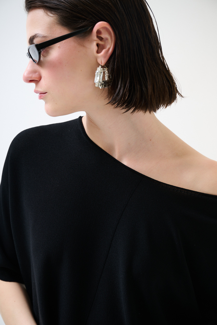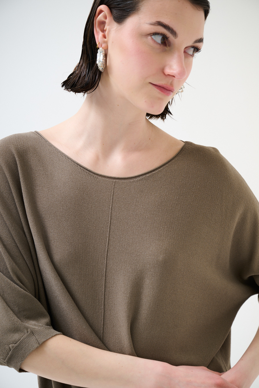 Oversized viscose top with short batwing sleeve and central seam line