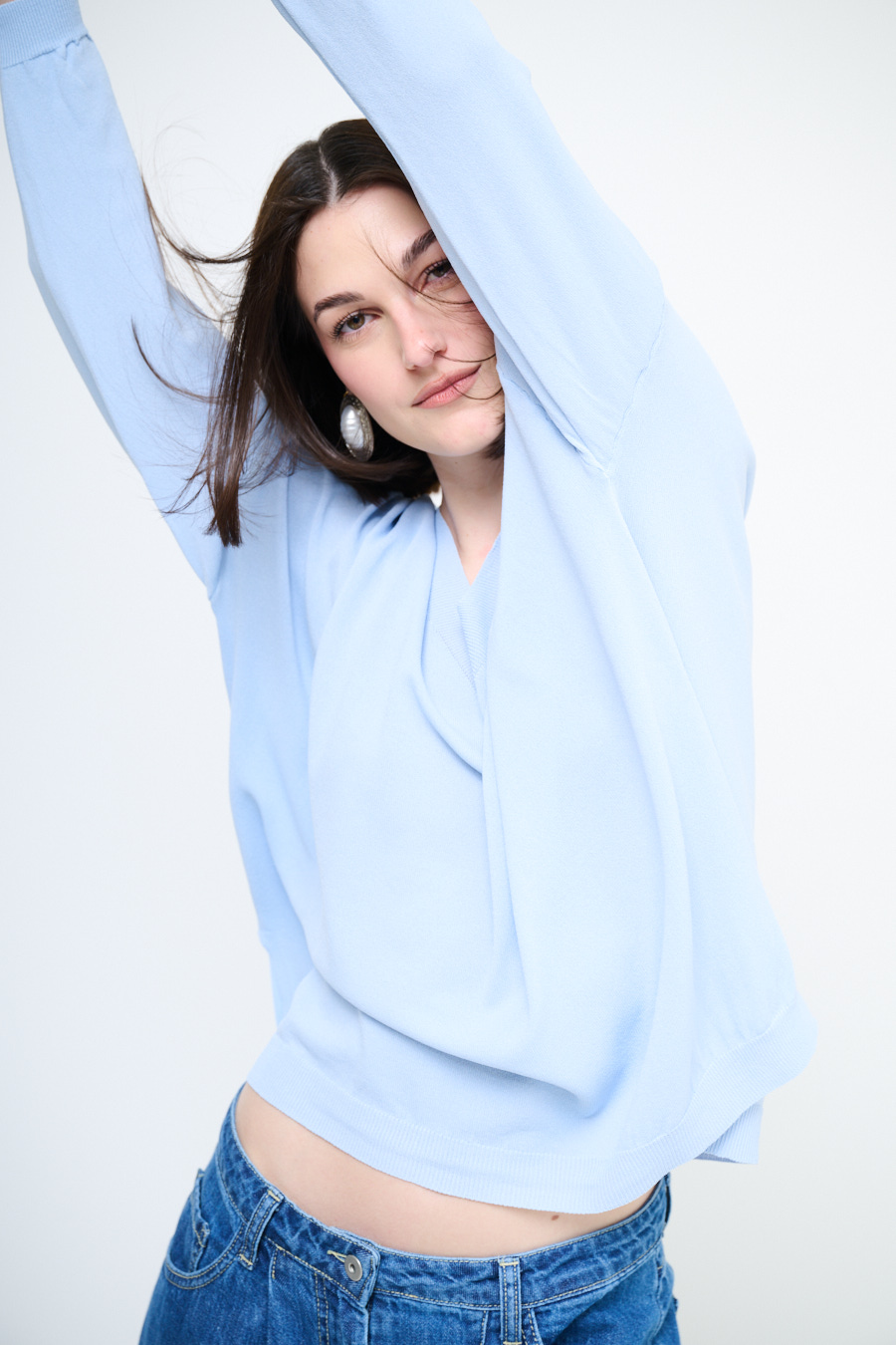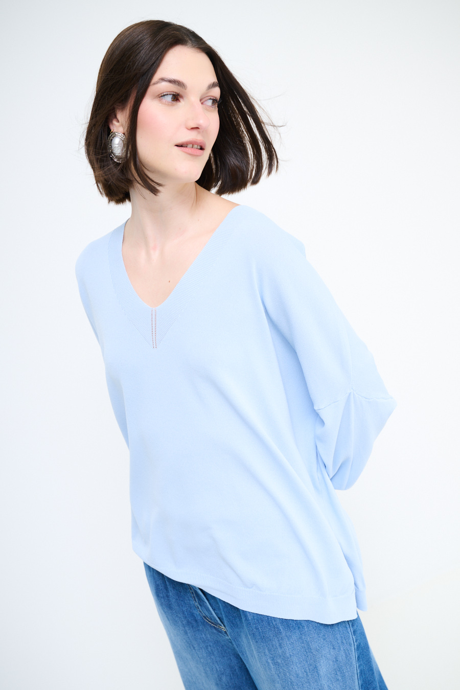 MAGLIA OVER SCOLLO V PROFONDO CELESTE