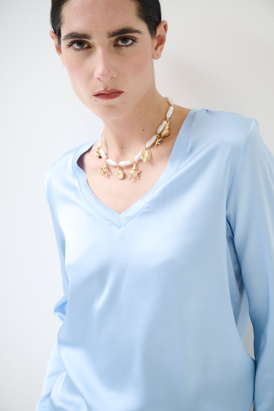MAGLIA SCOLLO A V IN RASO VISCOSA