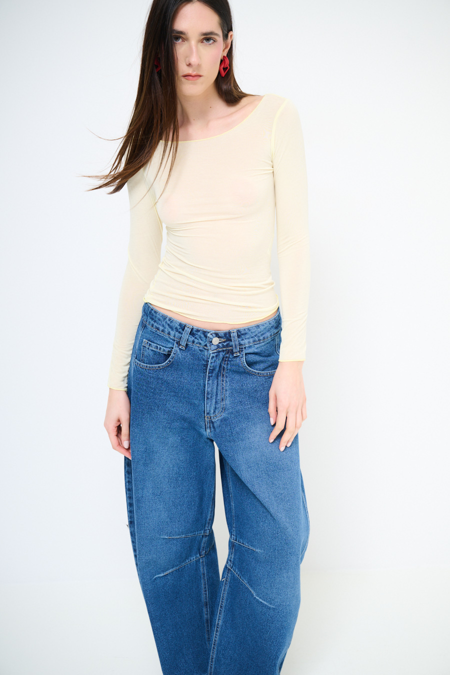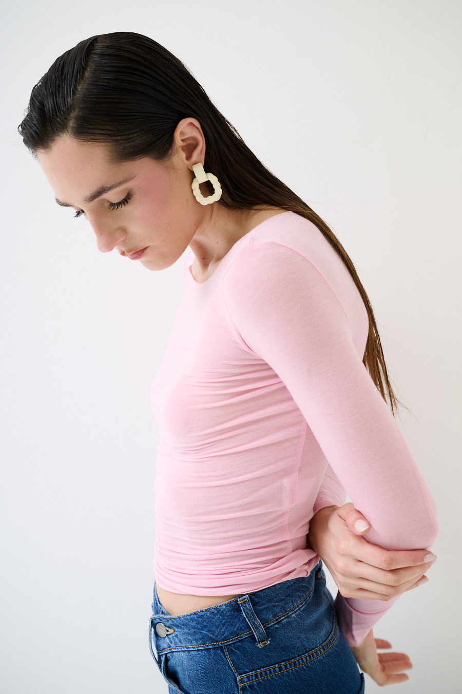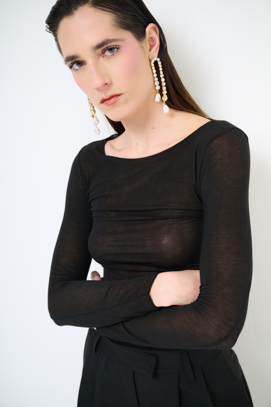 Basic semi-sheer modal long-sleeve top with boat neckline