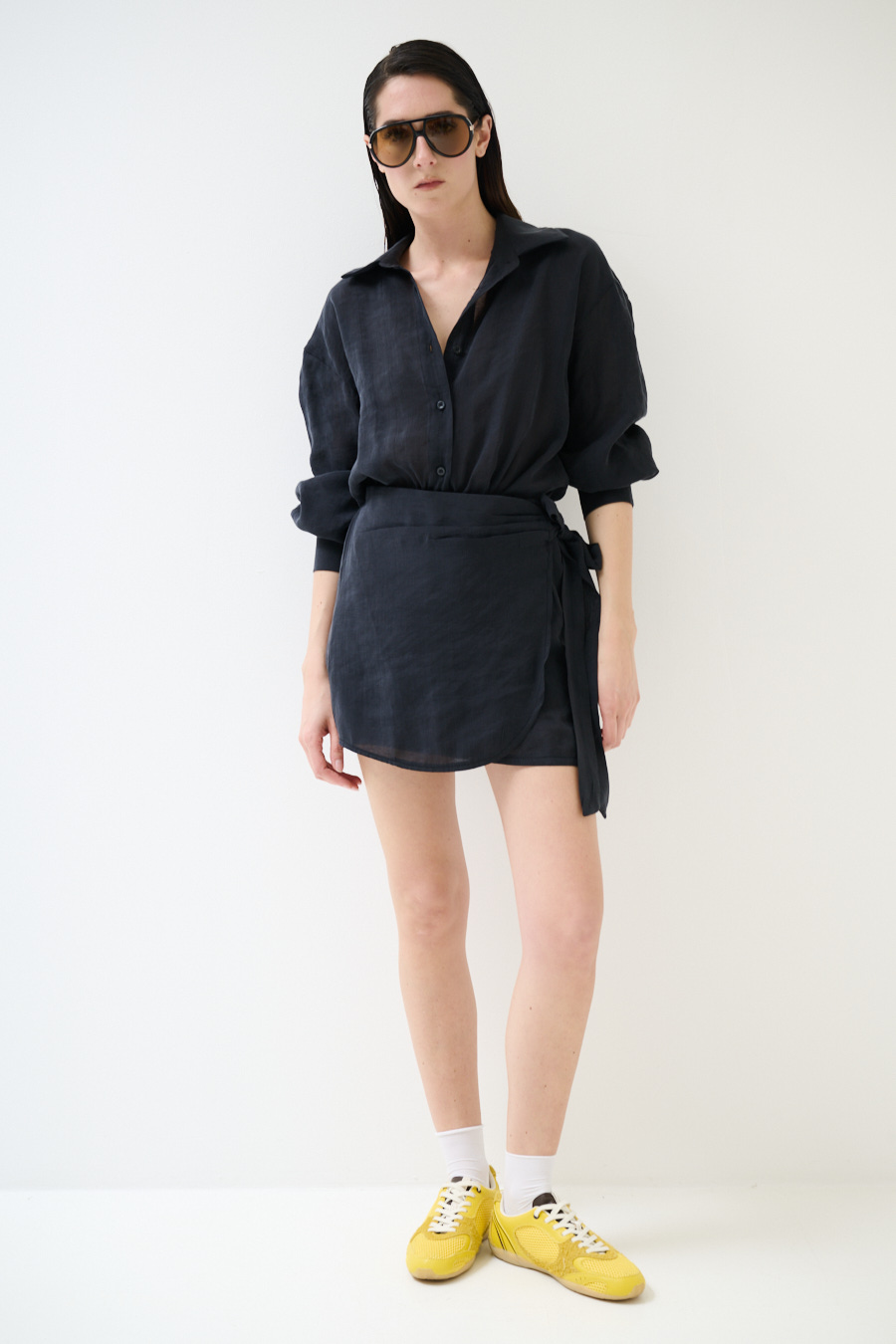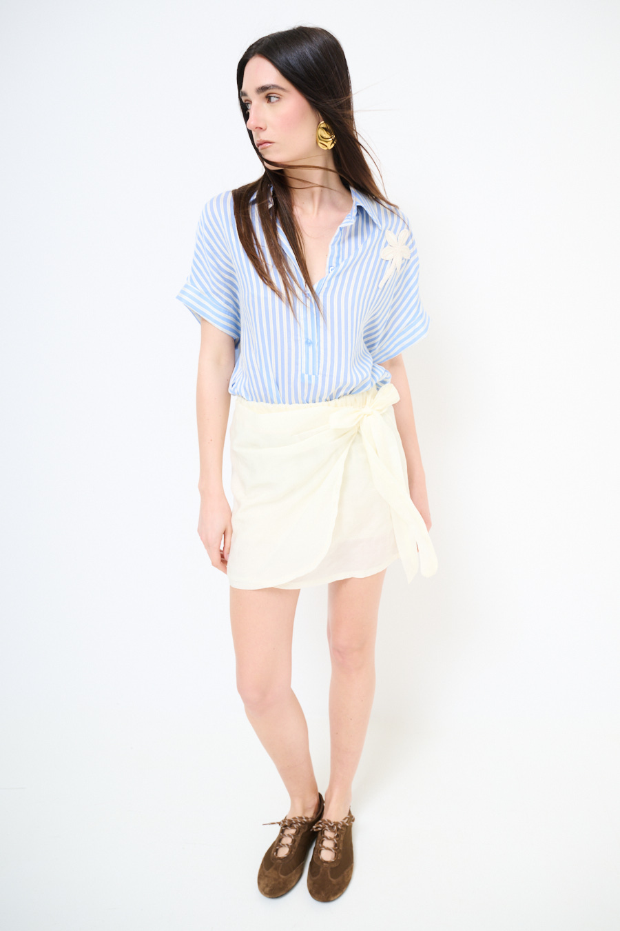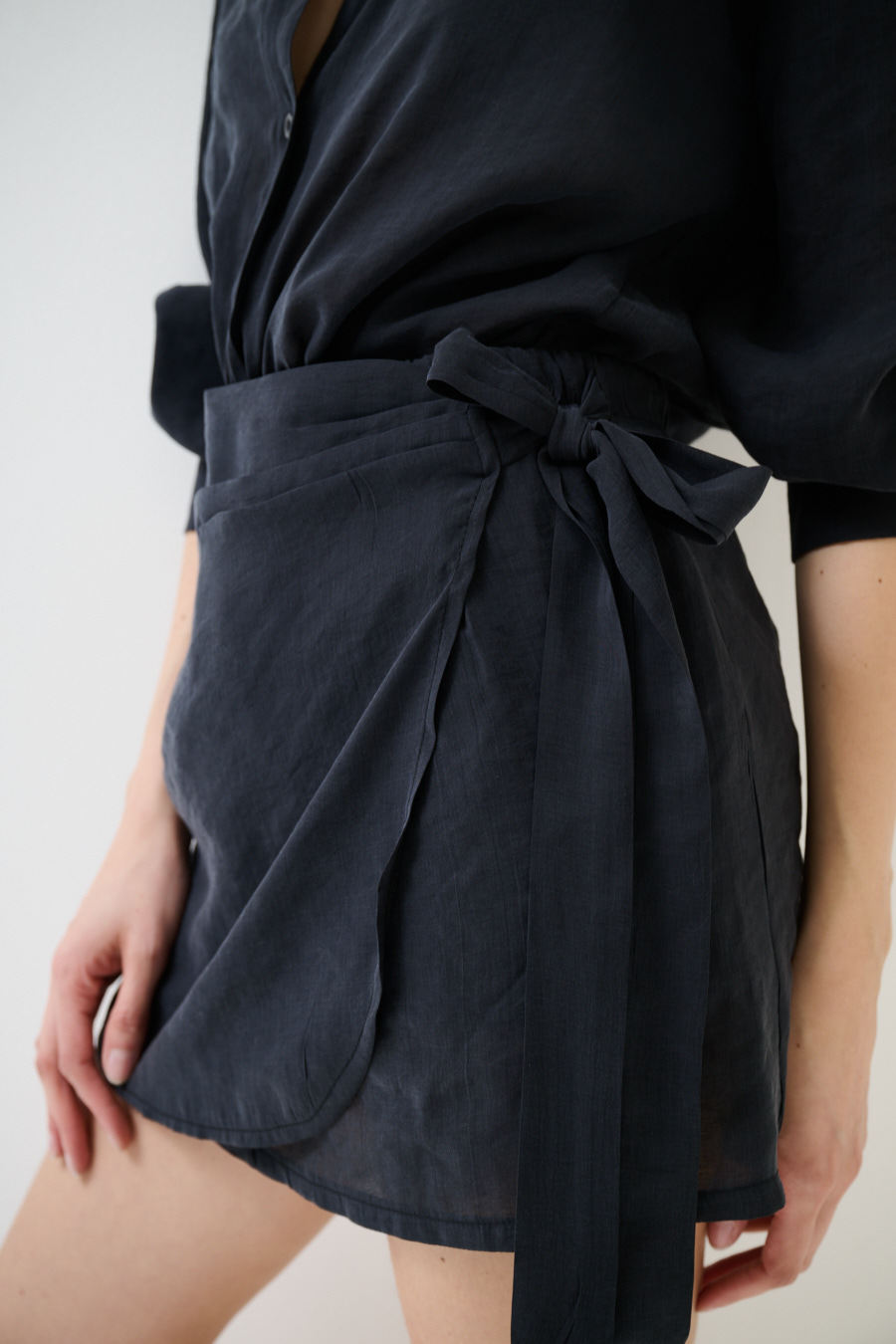 Lightweight mini skirt with elasticated waist and knotted side, with lining
