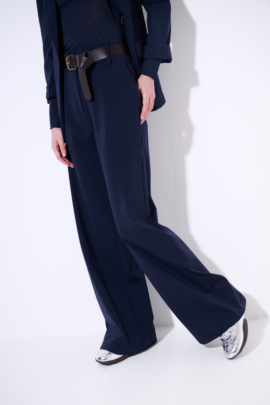PANTA PALAZZO CON CINTURA IN PUNTO MILANO BLU