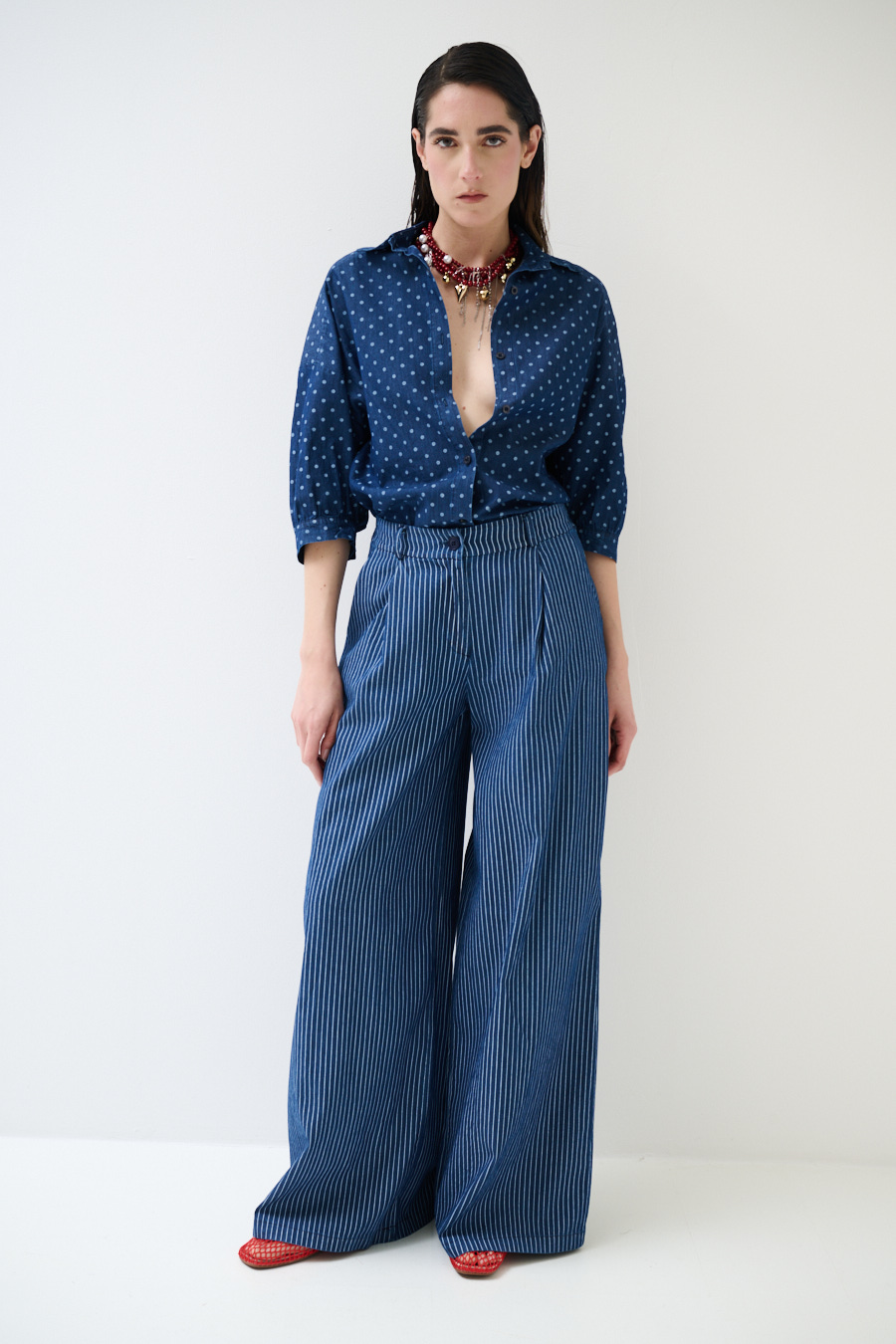 PANTA PALAZZO IN CAHMBRAY A RIGHE