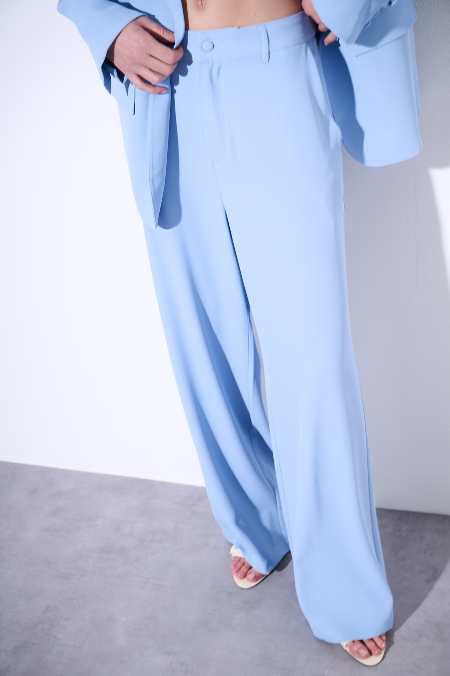 Wide-leg trousers in lightweight cadì with elastic back waistband and buttoned closure with lining and zip