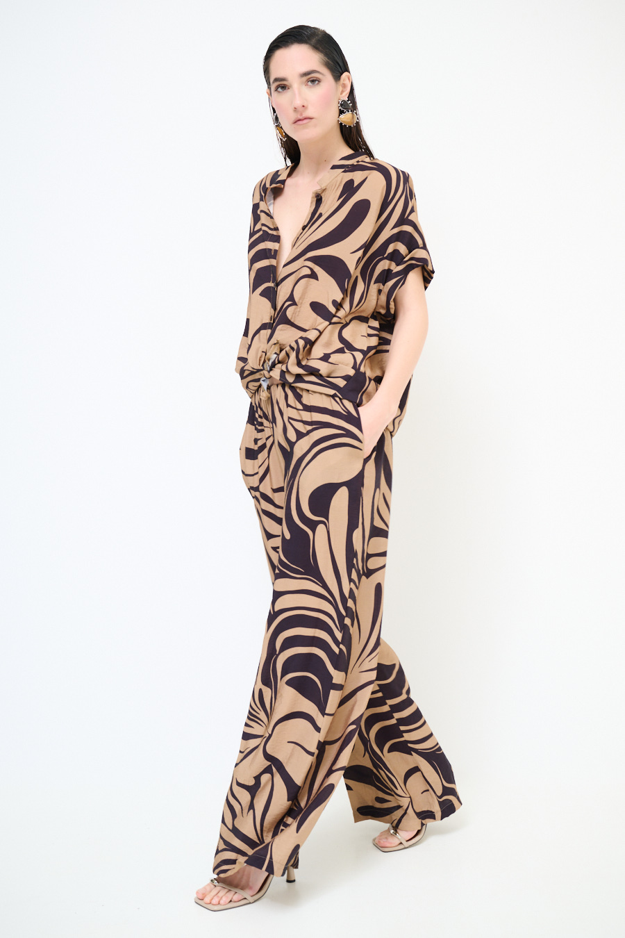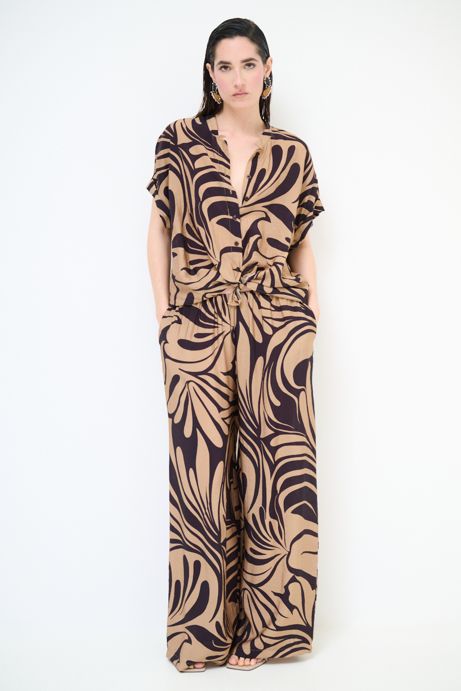 Pantalone ampio a fantasia con elastico in vita e coulisse