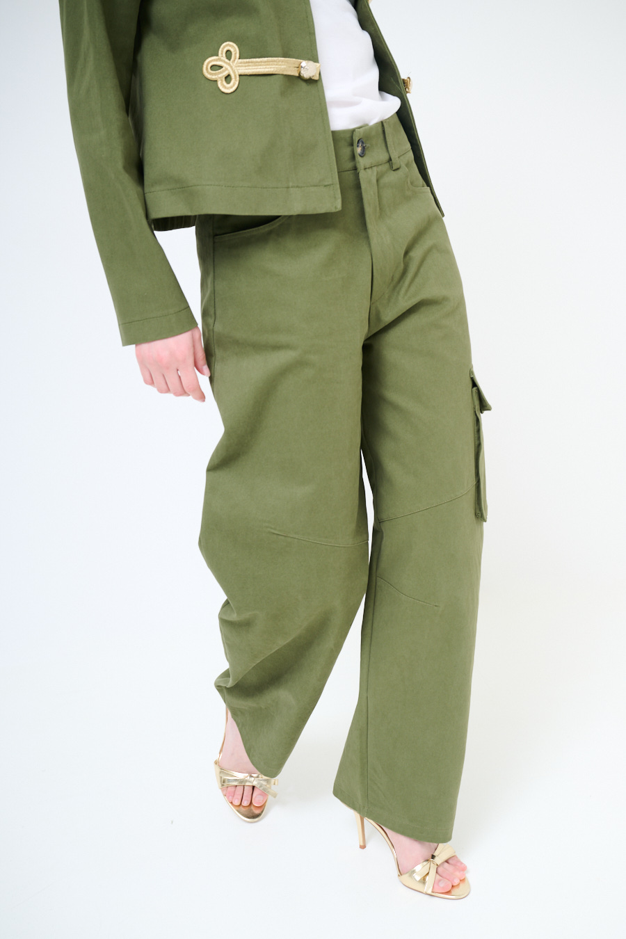 PANTALONE CARGO OVETTO CON TASCONI VERDE MILITARE