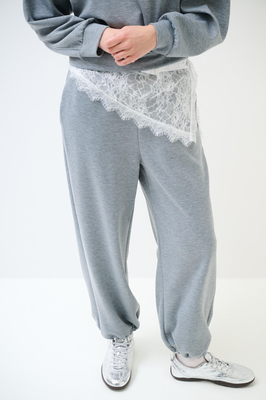 Brushed sweatpants with elastic waistband and adjustable ankle elastic, with pockets hidden in the side seam
