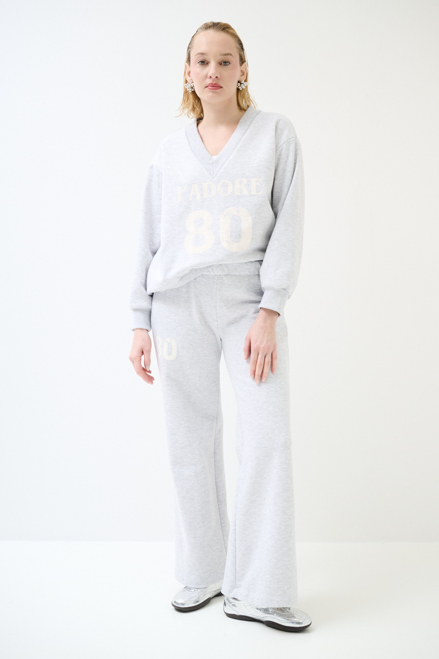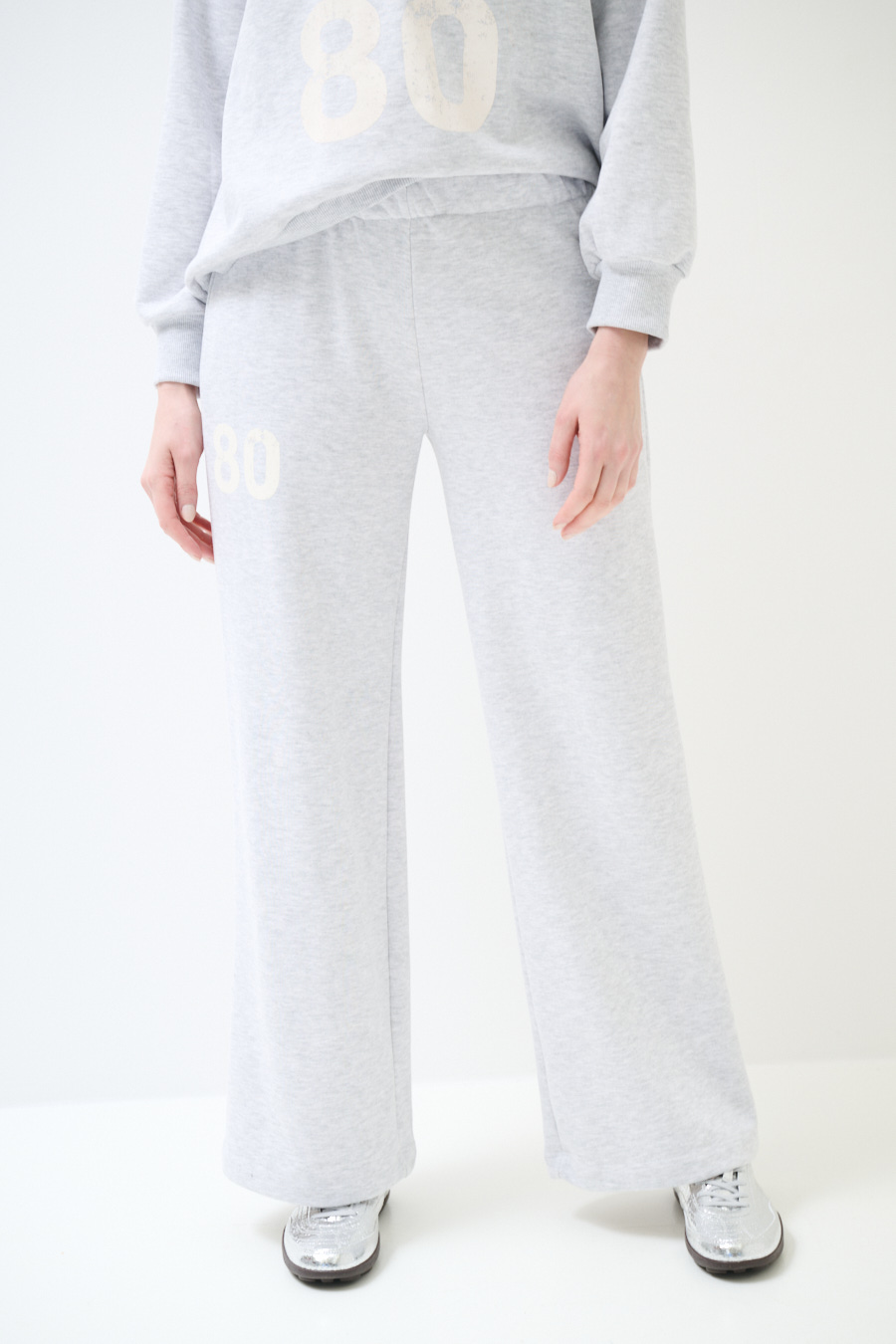 Palazzo sweatpants in brushed fabric with vintage number print on the side and elastic waist
