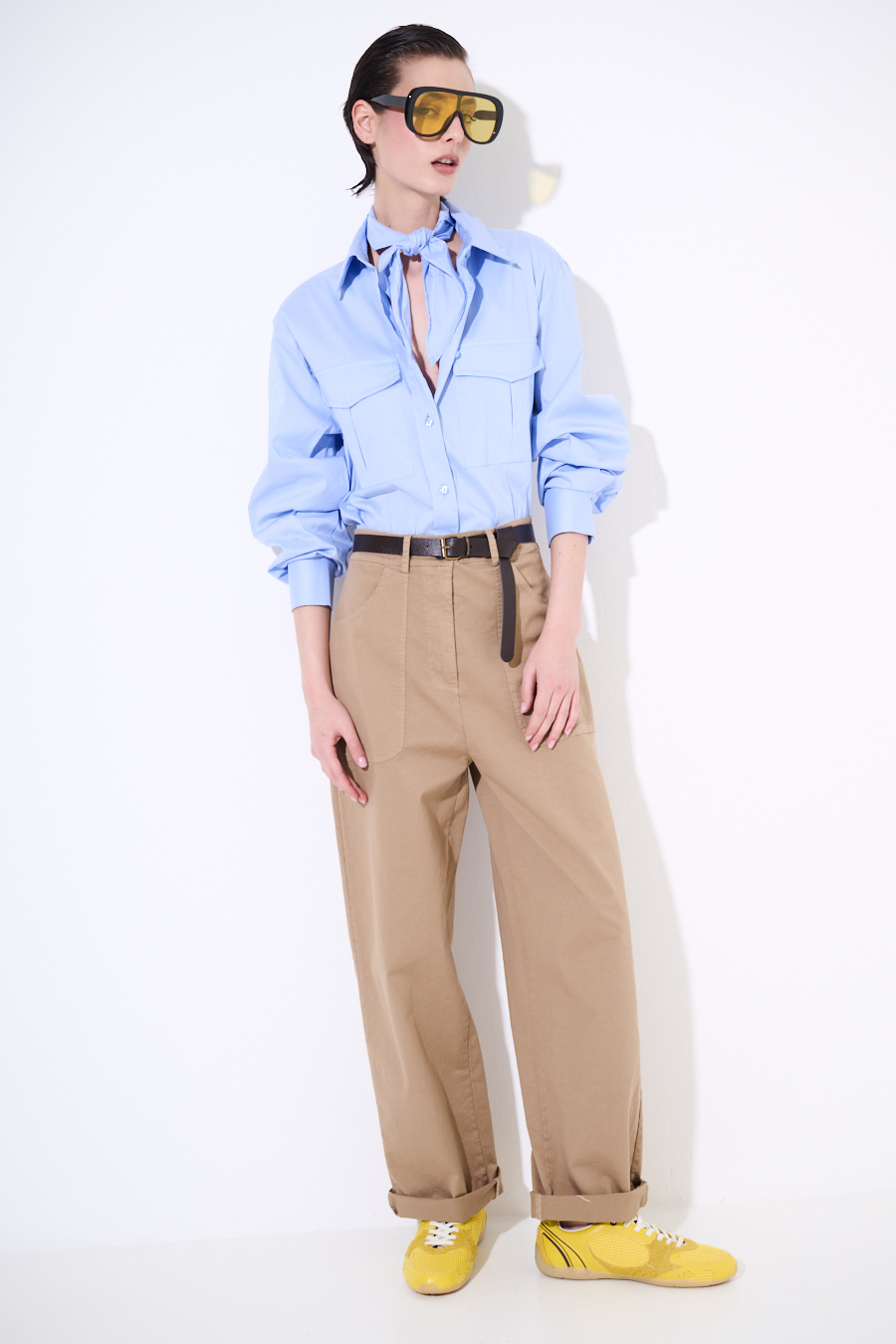 PANTALONE REGOLARE CON TASCONI E CINTURA CAMMELLO