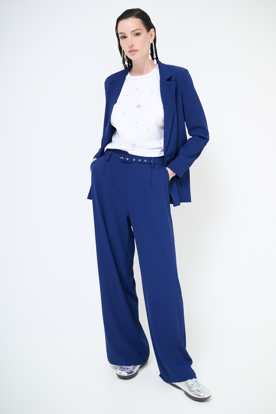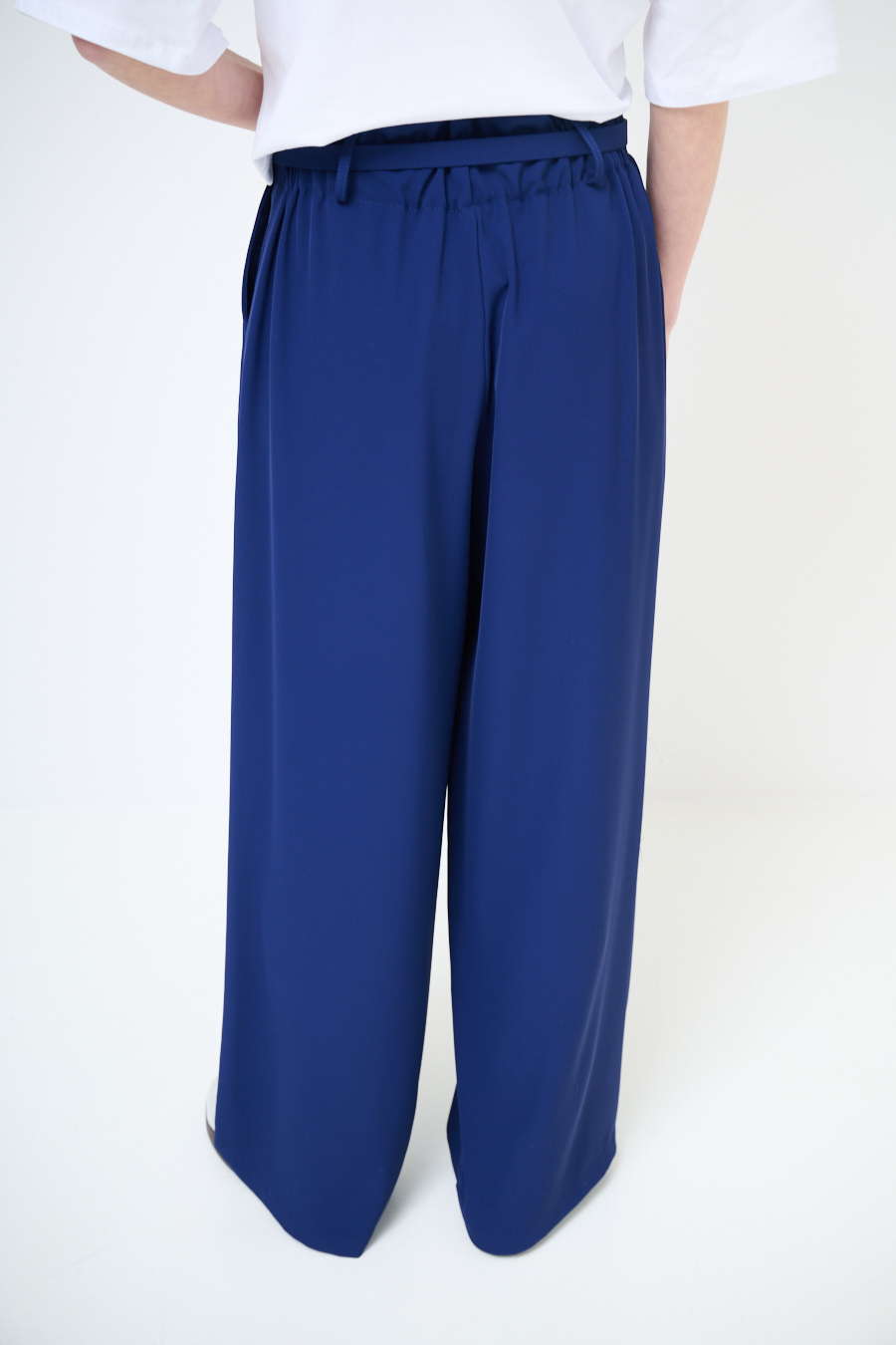 PANTAPALAZZO CON PINCES E CINTURA FODERATA BLU
