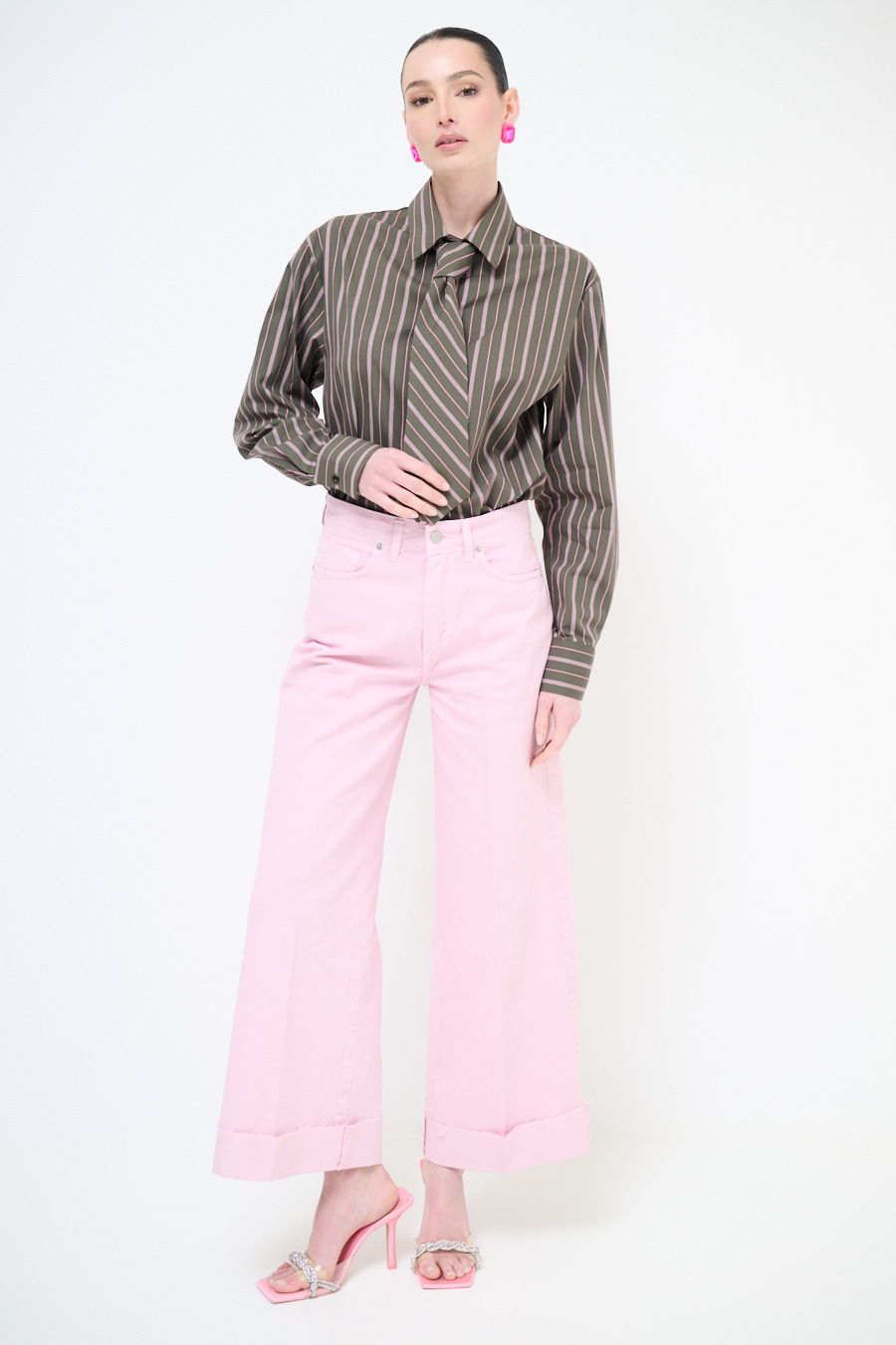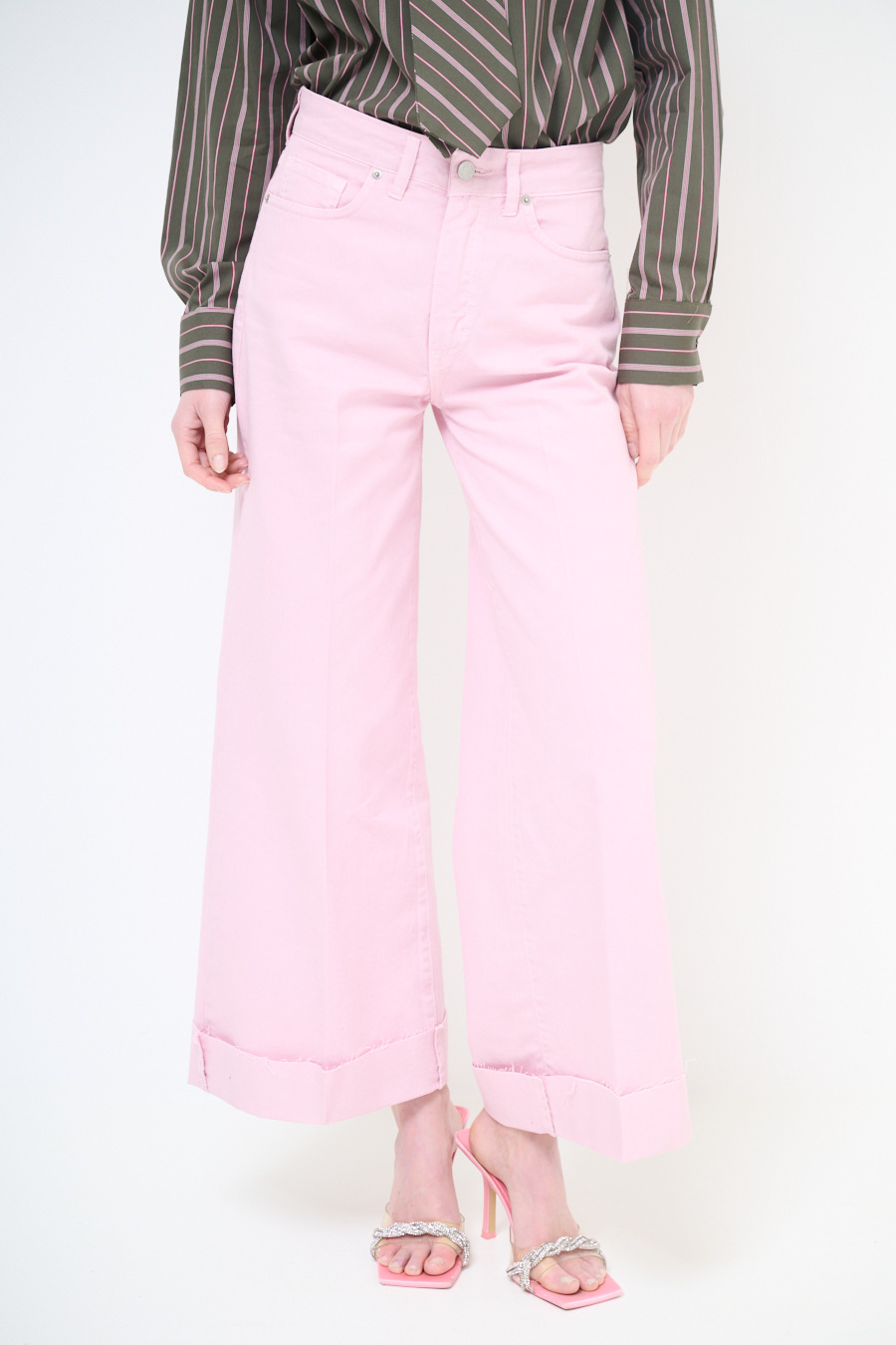 PANTAPALAZZO CON RISVOLTO E TAGLIO VIVO ROSA