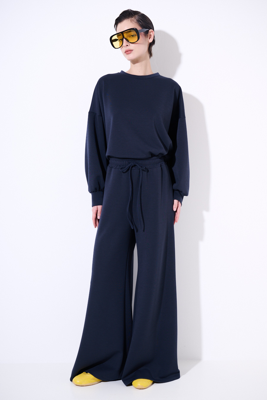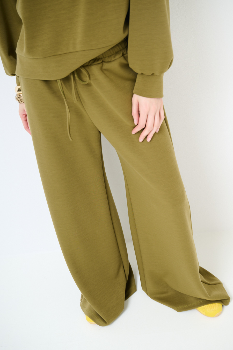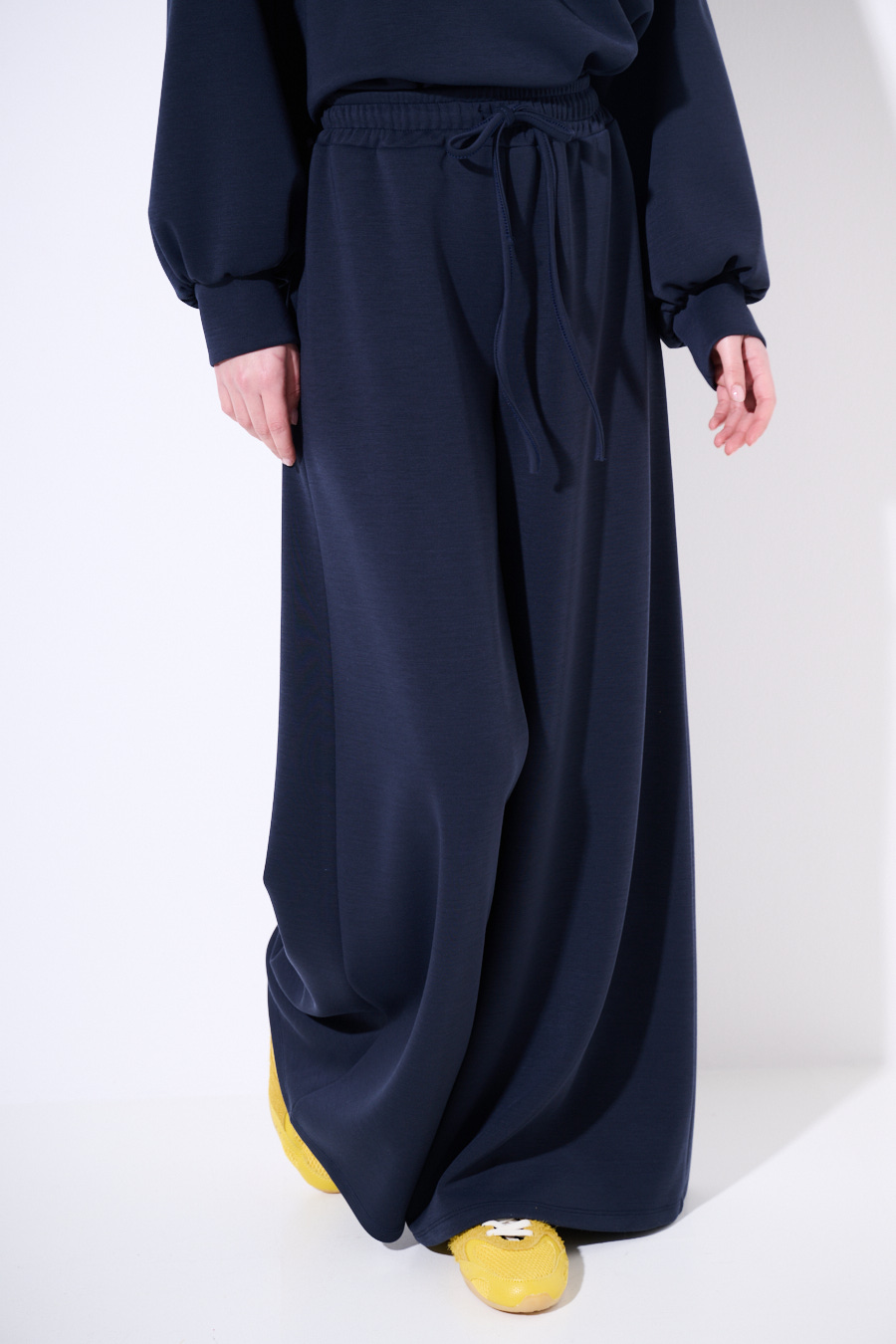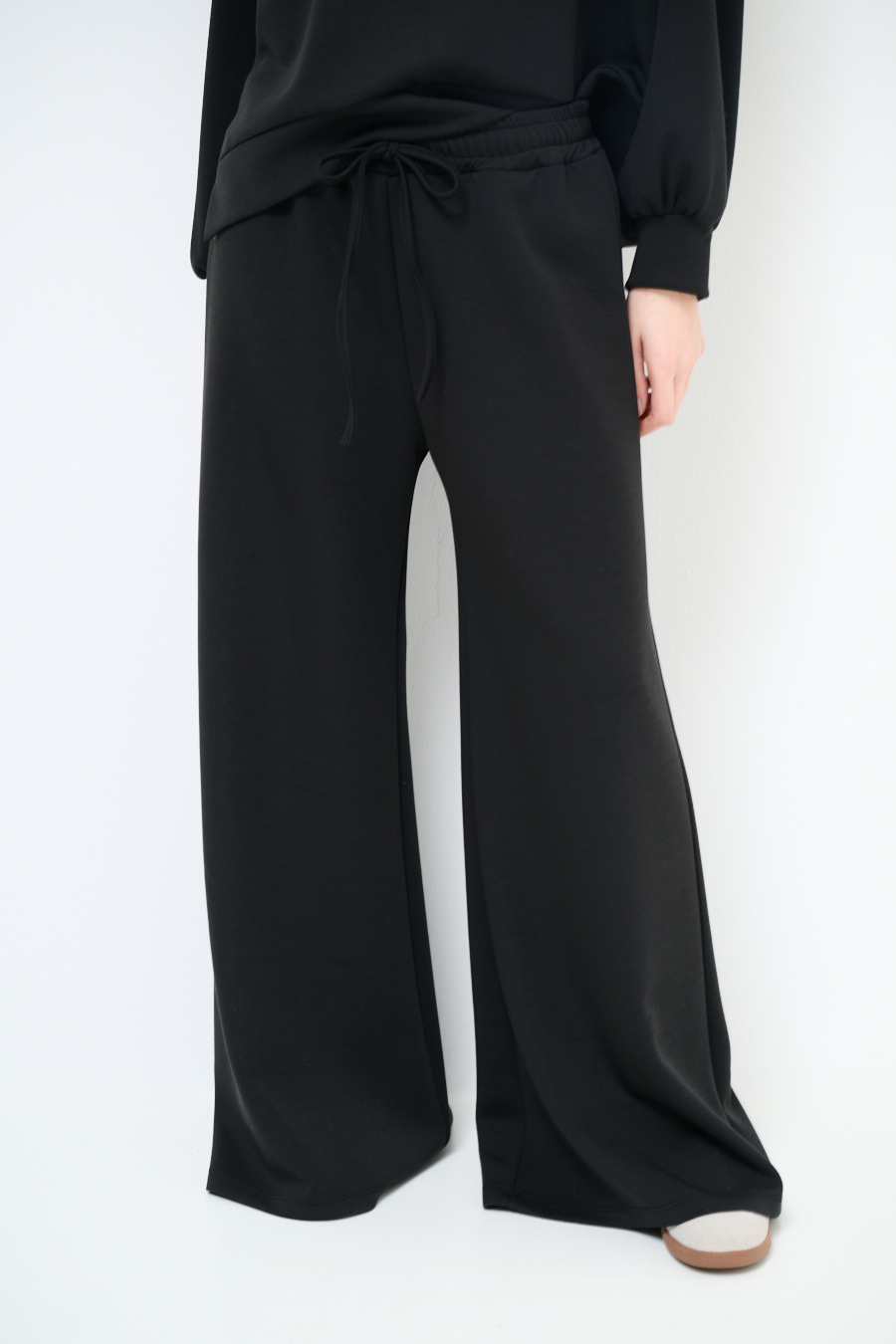 Modal fleece palazzo trousers with elastic waistband and drawstring