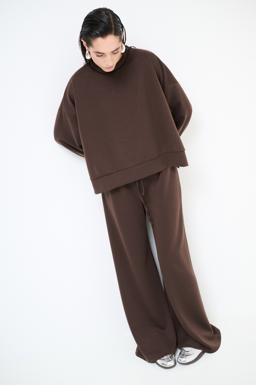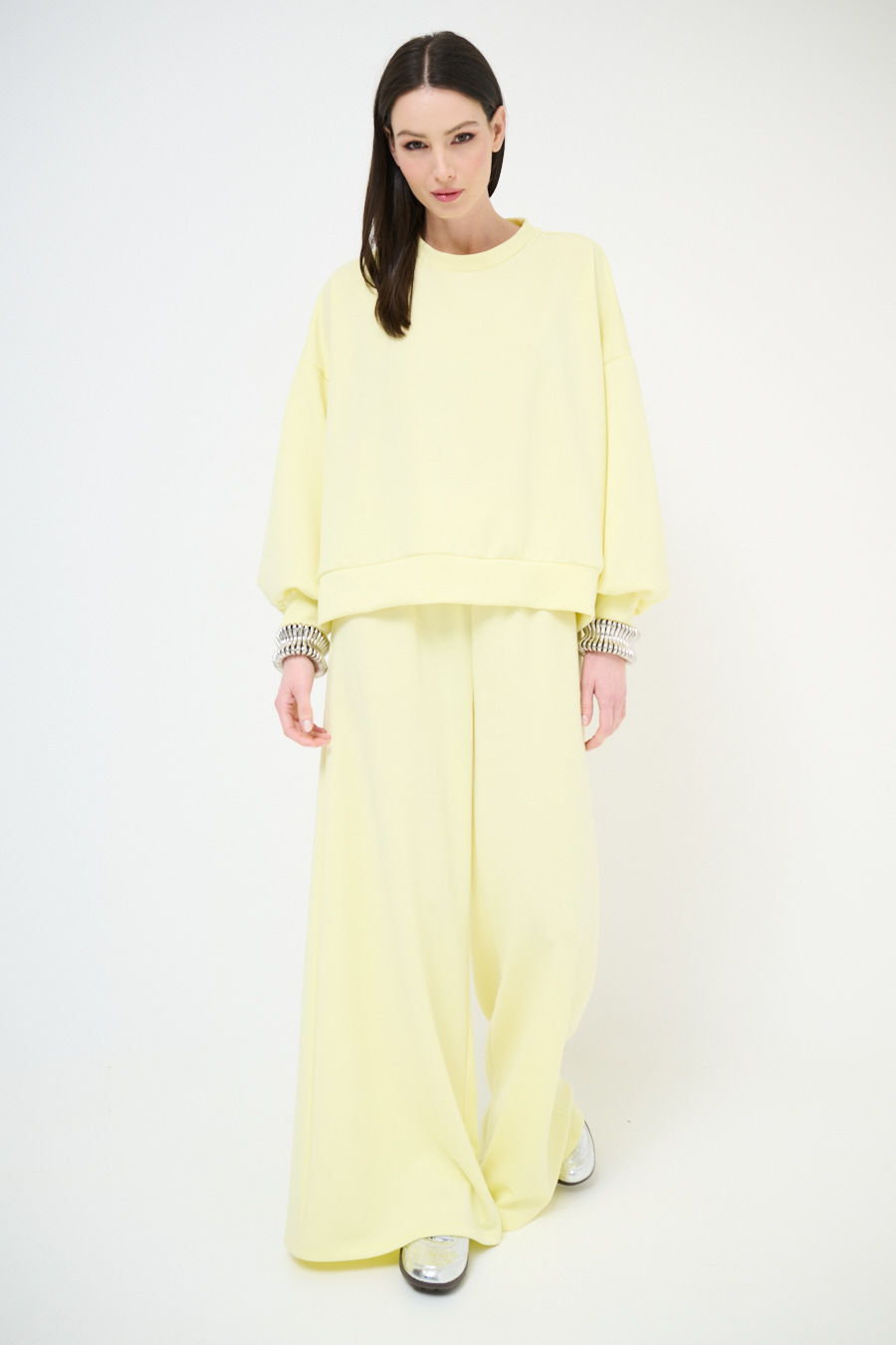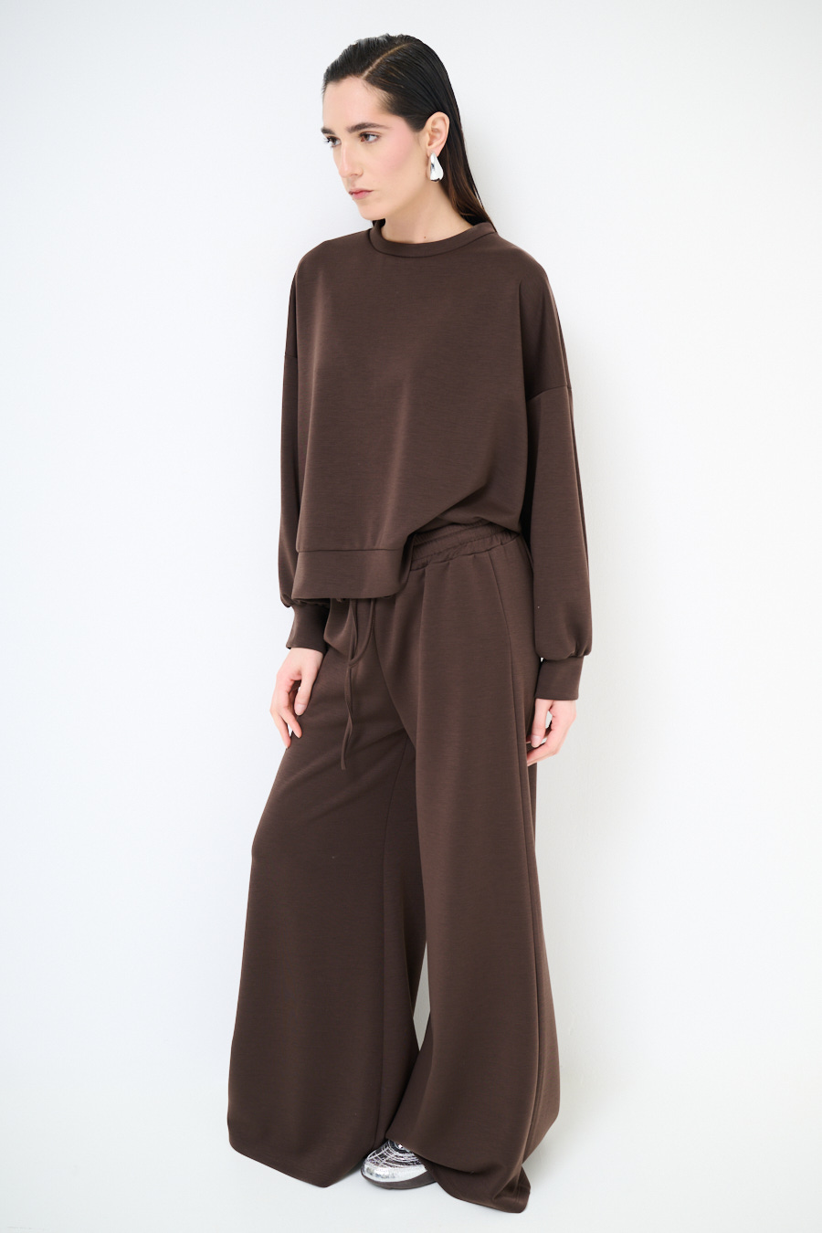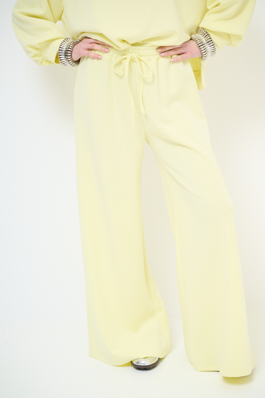 Modal fleece palazzo trousers with elastic waistband and drawstring