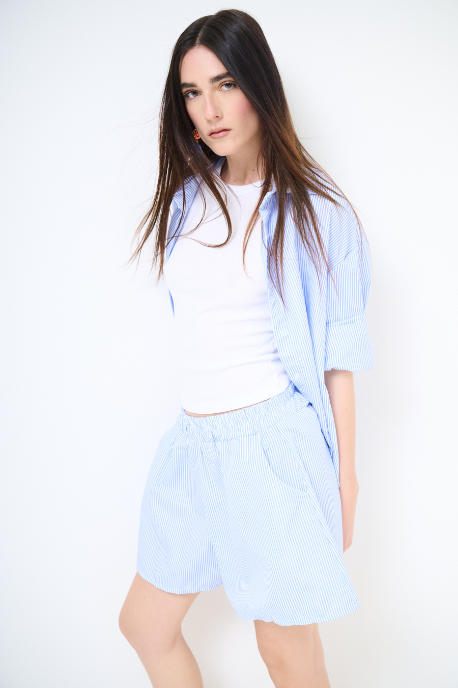 Poplin shorts with vertical stripes, elastic waist and slanted pockets