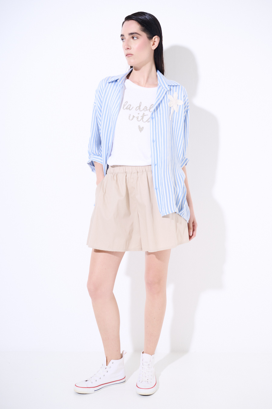 SHORTS IN POPELINE CON ELASTICO BEIGE