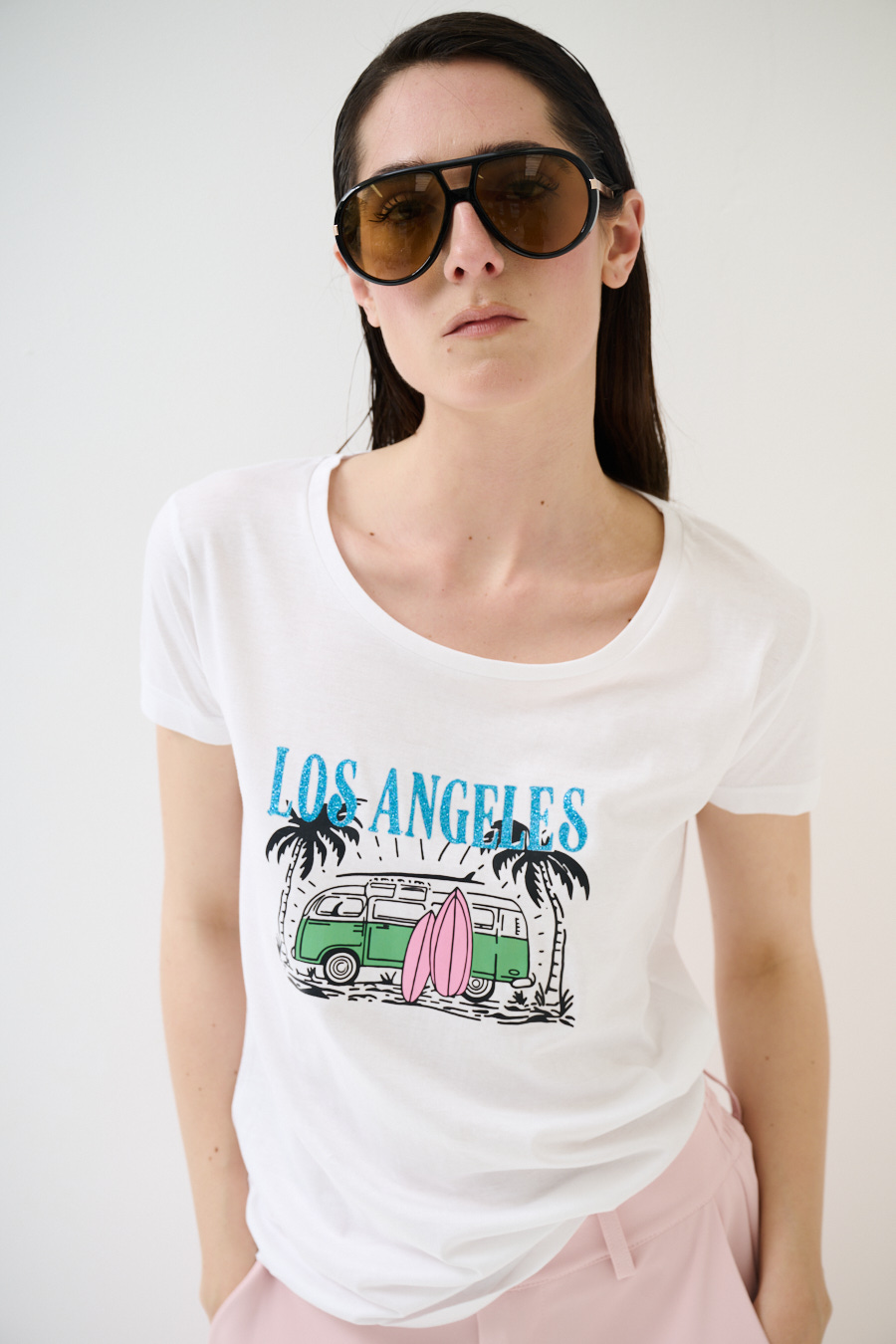 T-SHIRT BASIC CON STAMPA LOS ANGELES BIANCO